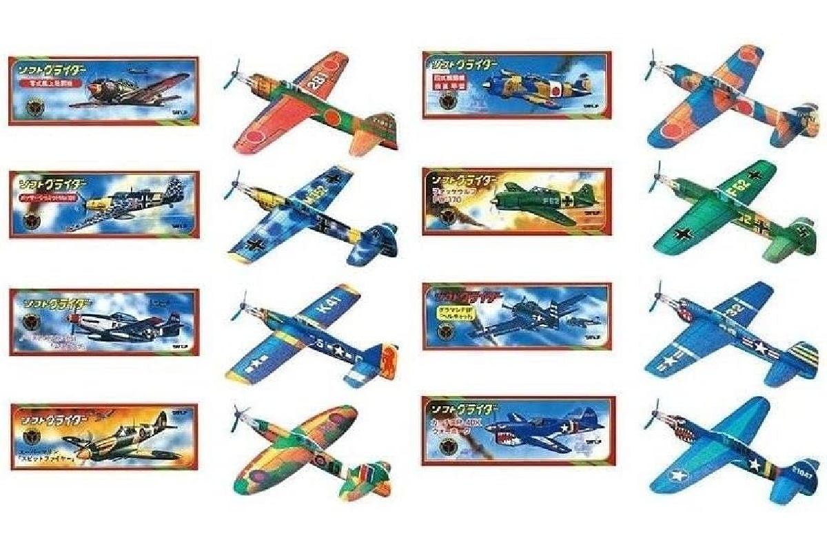 戦闘機やレシプロ機をモチーフにしたラインナップで、どの機体も昭和の駄菓子屋に売っていたものを思い出させるデザインになっています。