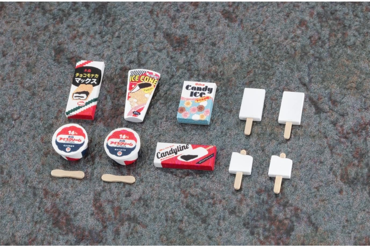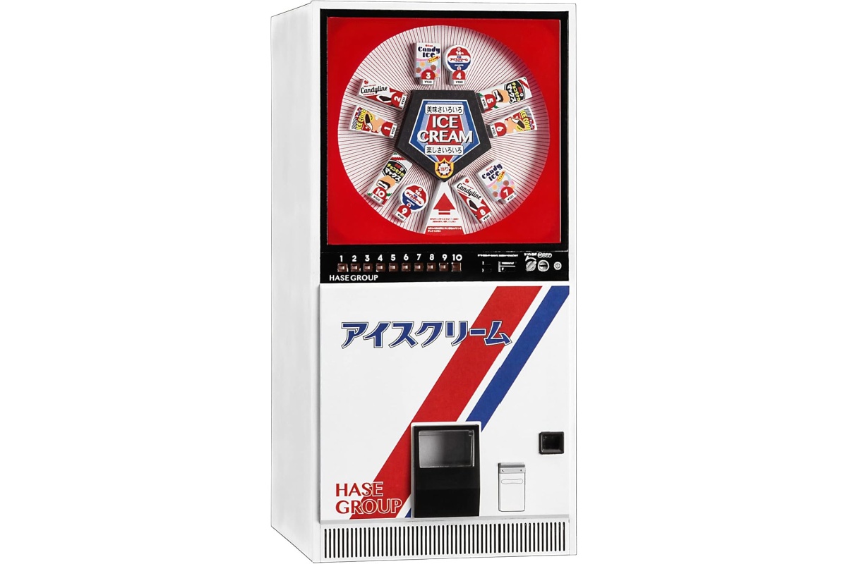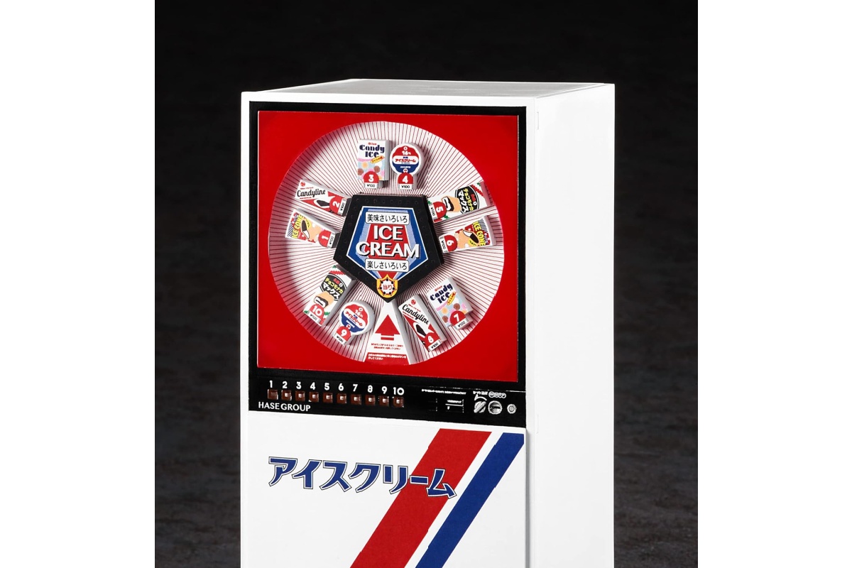 透明パネル越しに並ぶアイスのミニチュアまで精巧に作り込まれており、まるで実際にボタンを押せそうなリアリティがあります。