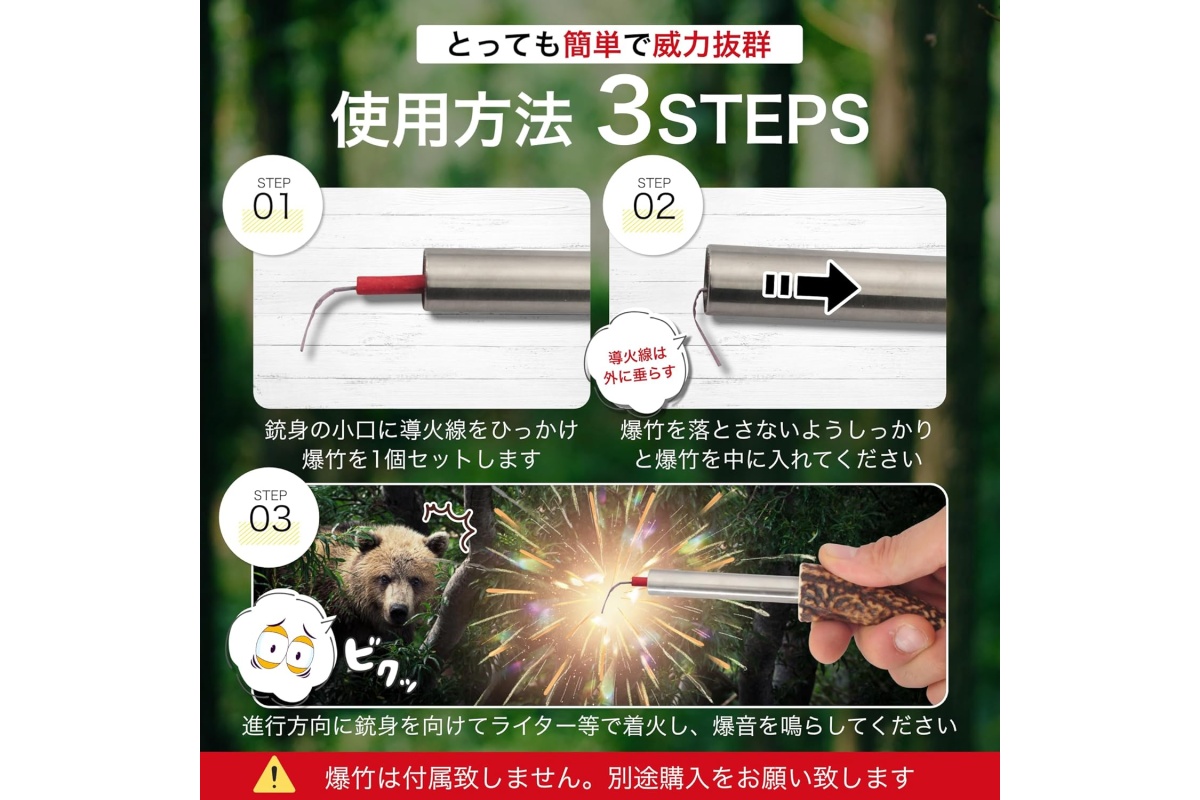 爆竹の音が増幅されるようになっており、イノシシなどの野生動物を強い音で威嚇することが可能です。