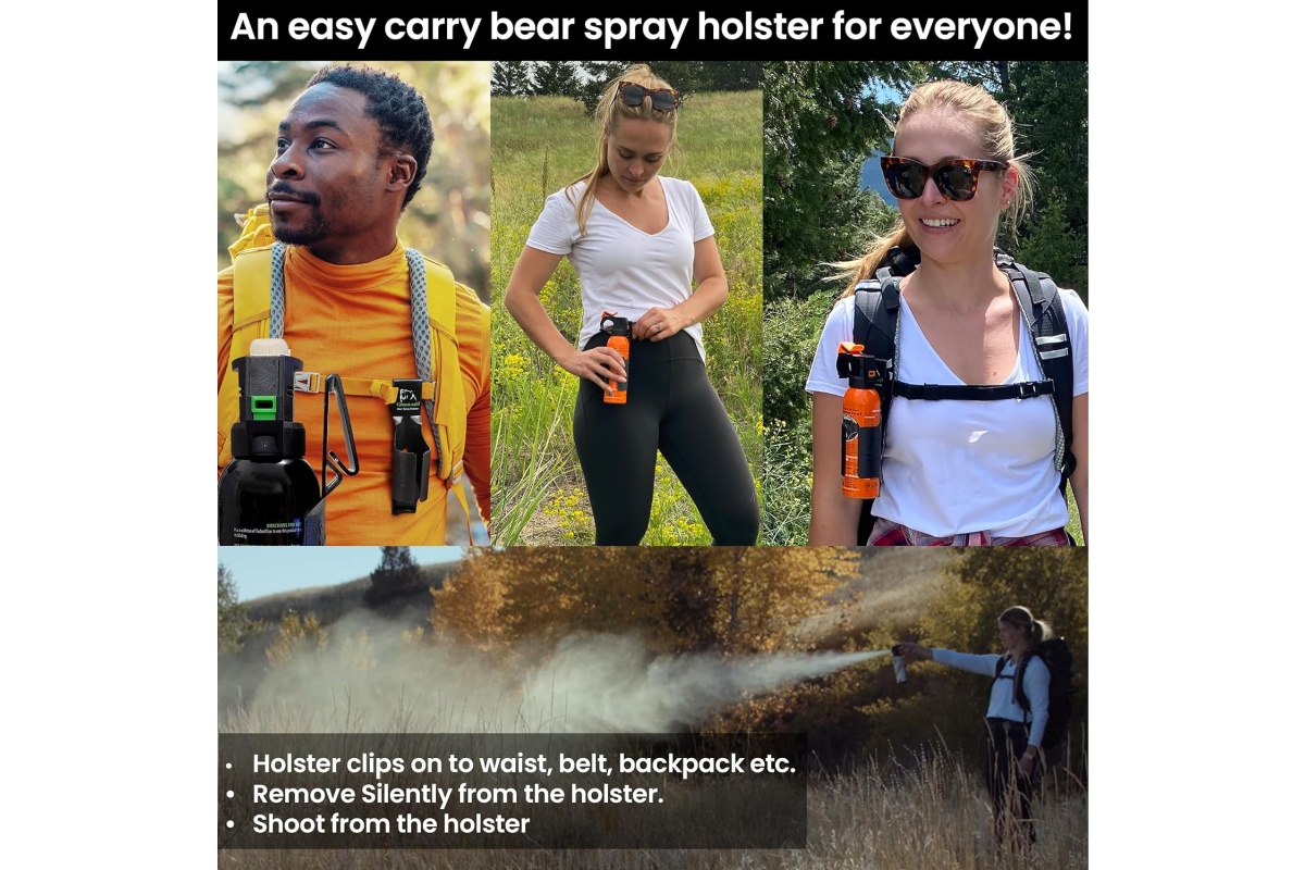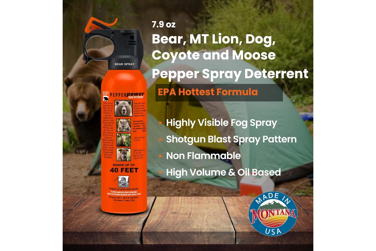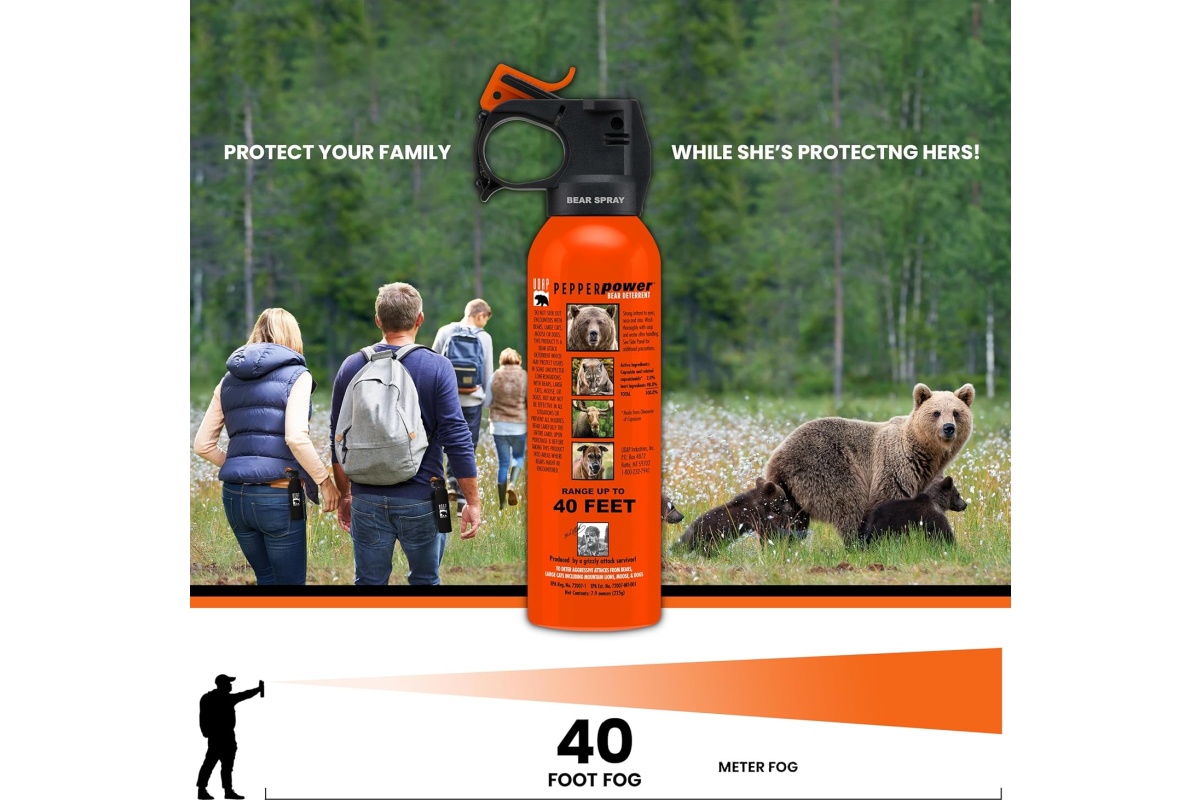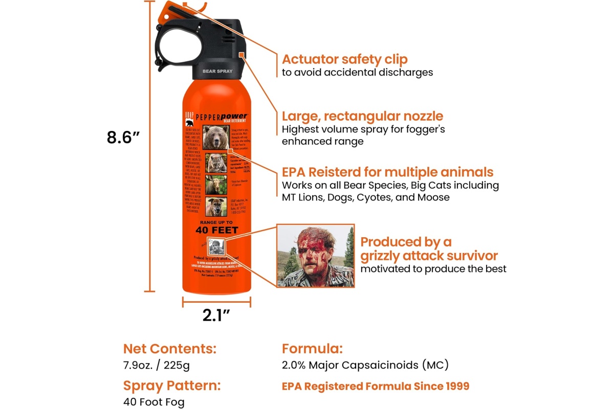 キャップを外してトリガーを引くだけで、強力な唐辛子成分(カプサイシン)を含むスプレーが霧状に広がり、熊が接近する前に退散させることができます。