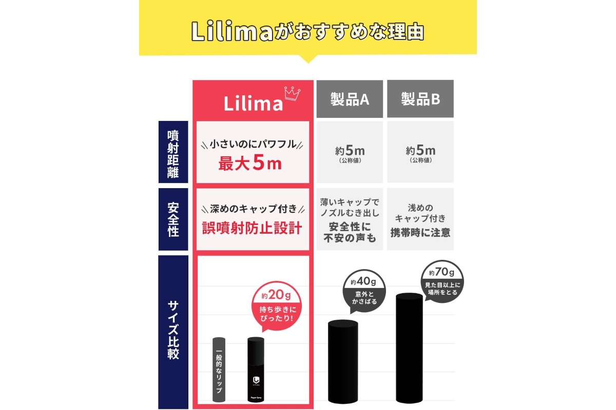登山や夜道の防犯対策として人気なのが、「Lilima 催涙スプレー」です。