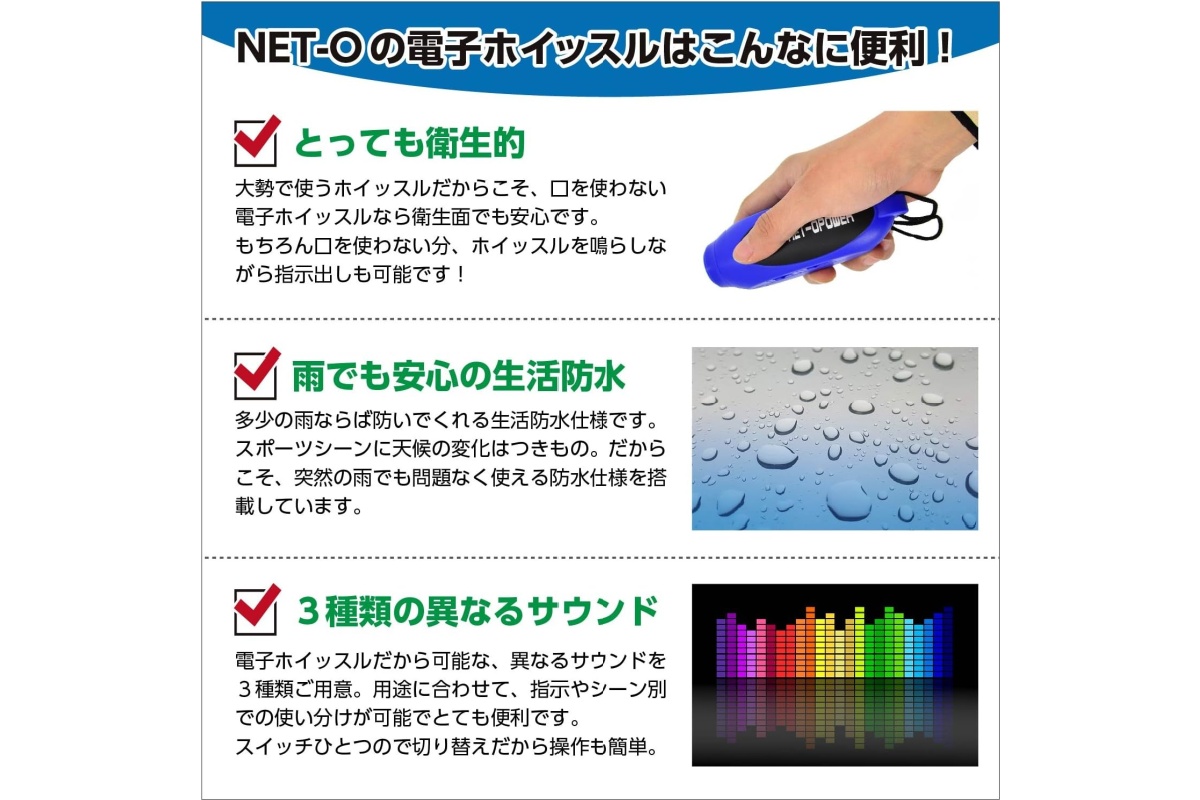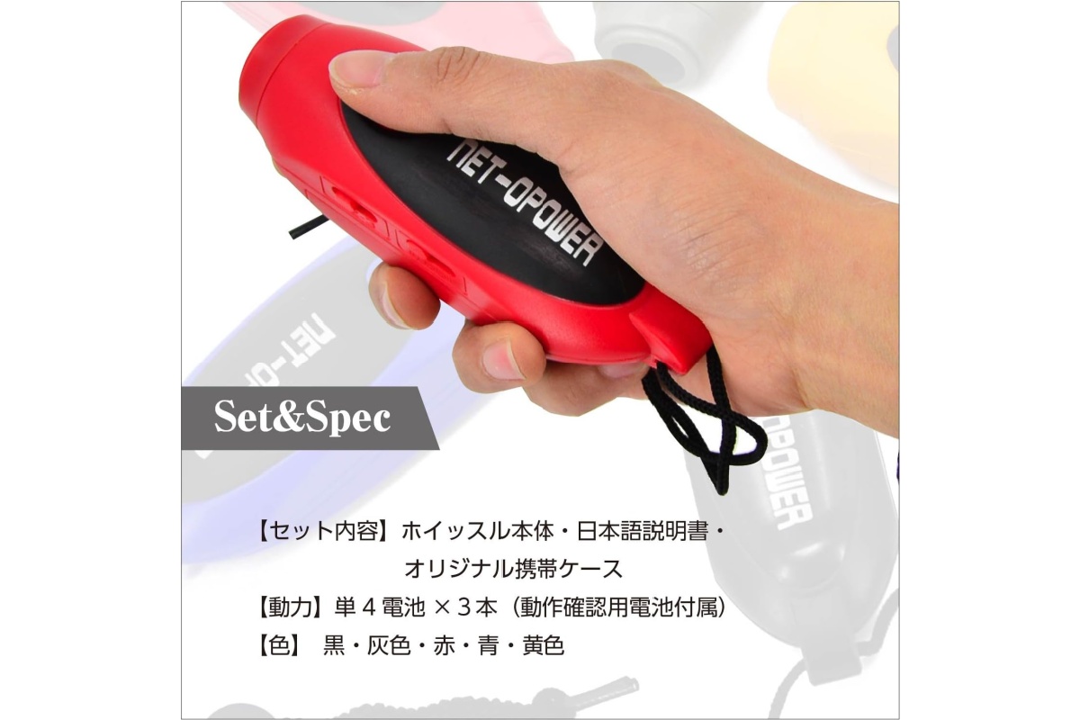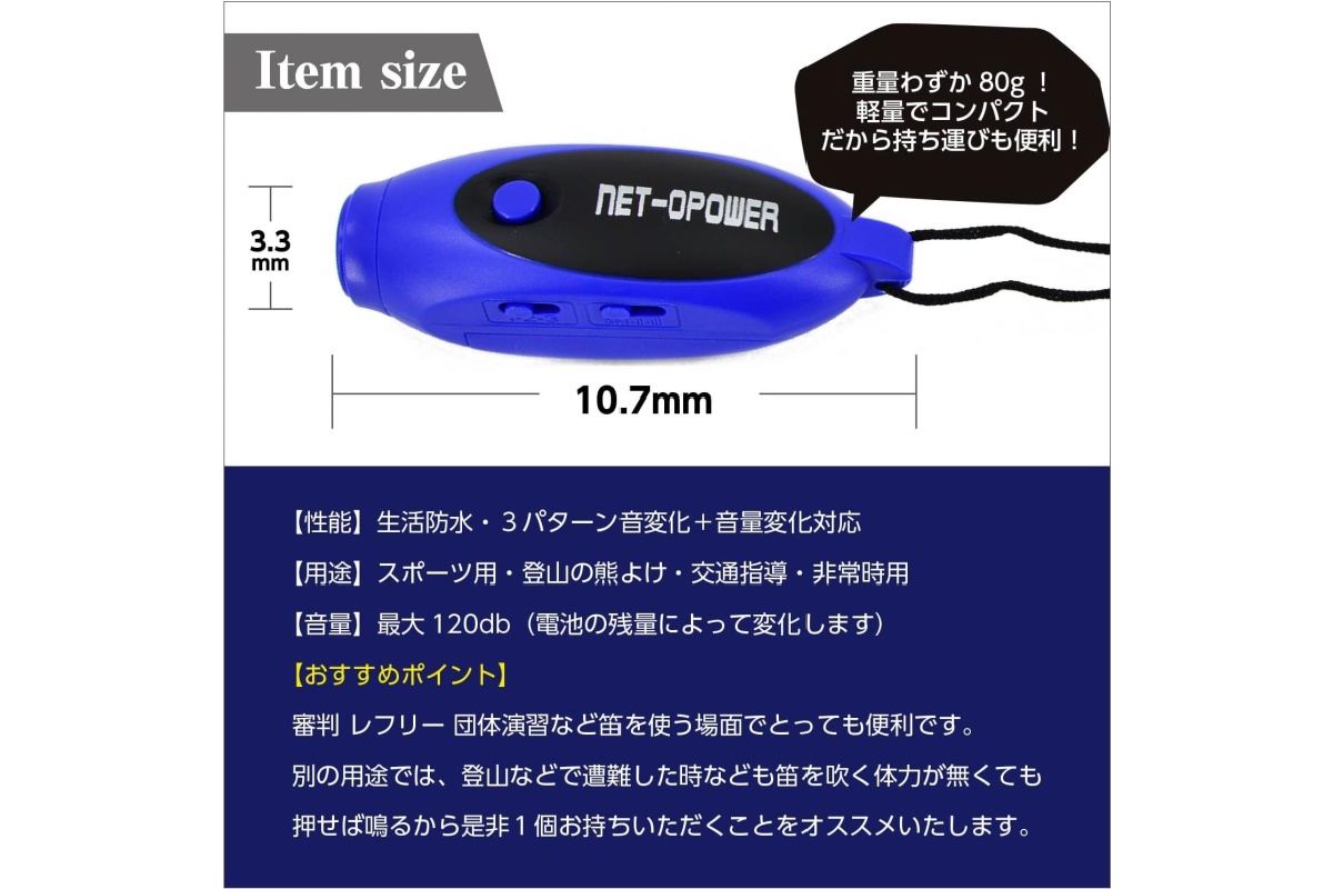 自衛隊や救助隊などの現場でも採用されている「NET-O 電子ホイッスル」は、ボタンを押すだけで強力な警告音を発する多機能ホイッスルです。
