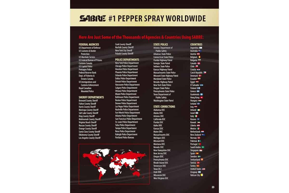 アメリカで高いシェアを誇る防犯ブランド「SABRE(セイバー)」が開発したペッパージェルスプレーは、警察機関や軍でも採用されている信頼性の高い護身用スプレーです。