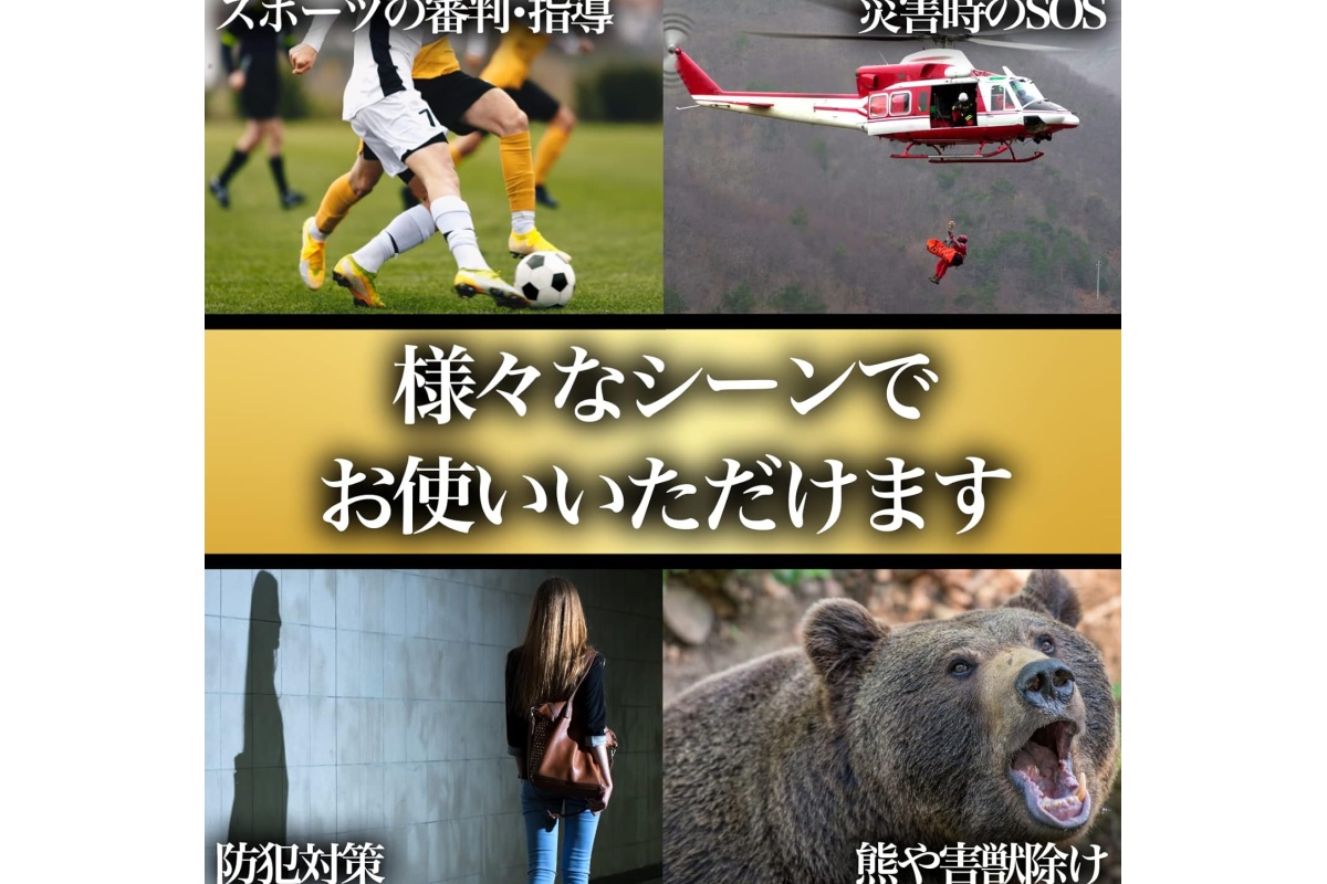 サイズもコンパクトで、バッグやポケットに収納しやすく、非常時の呼びかけや威嚇にも使える実用性の高いアイテムといえます。