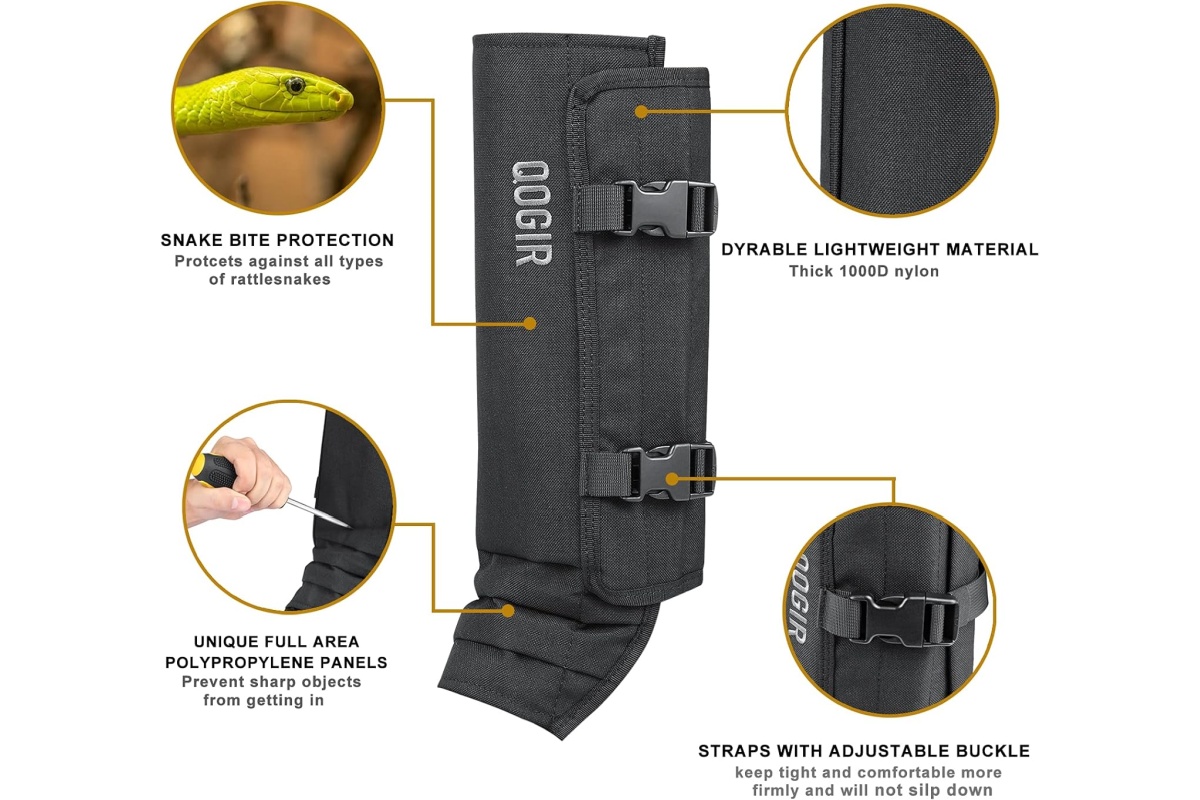 QOGIRのスネークゲートルは、蛇やヘビの噛みつきから足元を守るために設計された保護ギアで、登山やハイキング、藪漕ぎ、作業時など足元に危険がある場面で安心して使用できる仕様になっています。