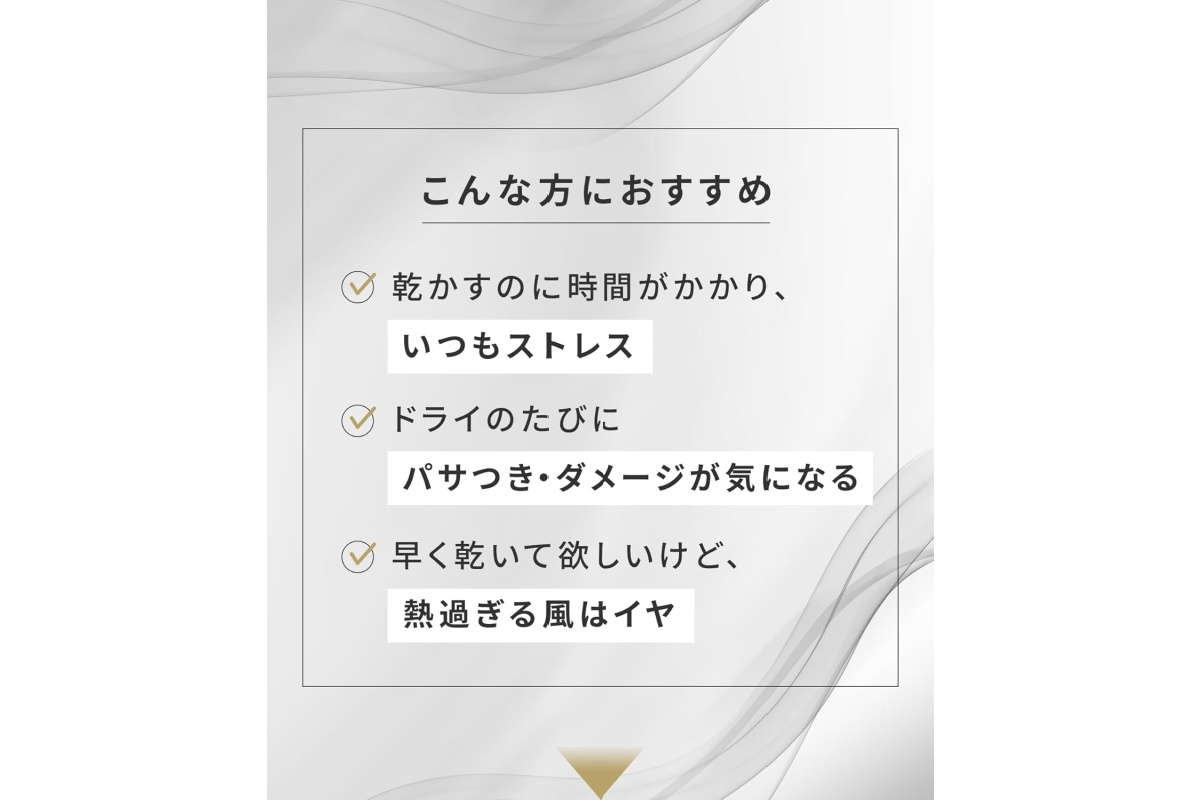 今のドライヤーに時間や重さのストレスがあるなら、この手の大風量モデルに変えるだけで日々の手間がかなり減ります。