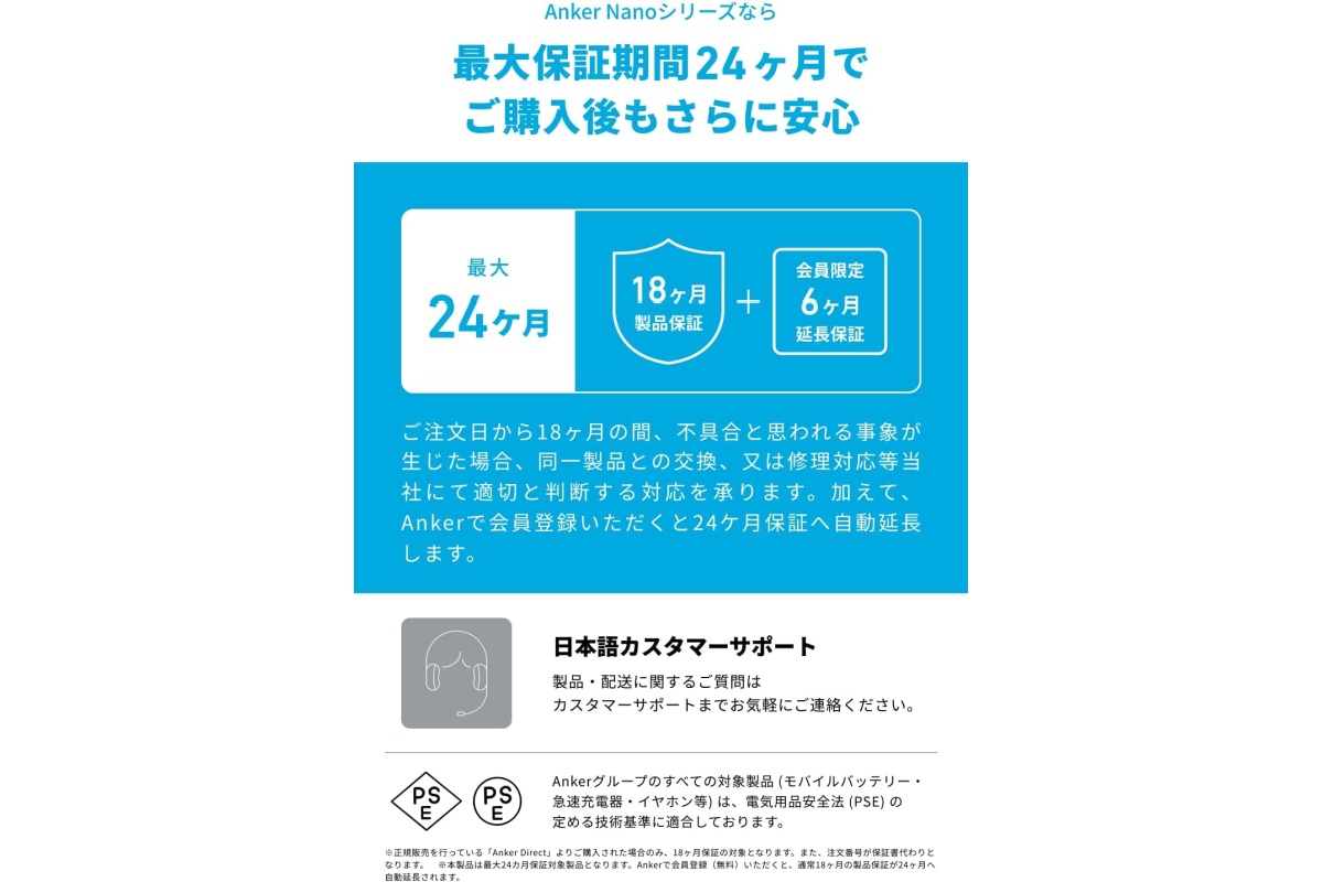 PSE技術基準に適合しているので、日常使いの持ち歩き用としても選びやすく、通勤・通学や旅行、出張のサブ電源として活躍します。