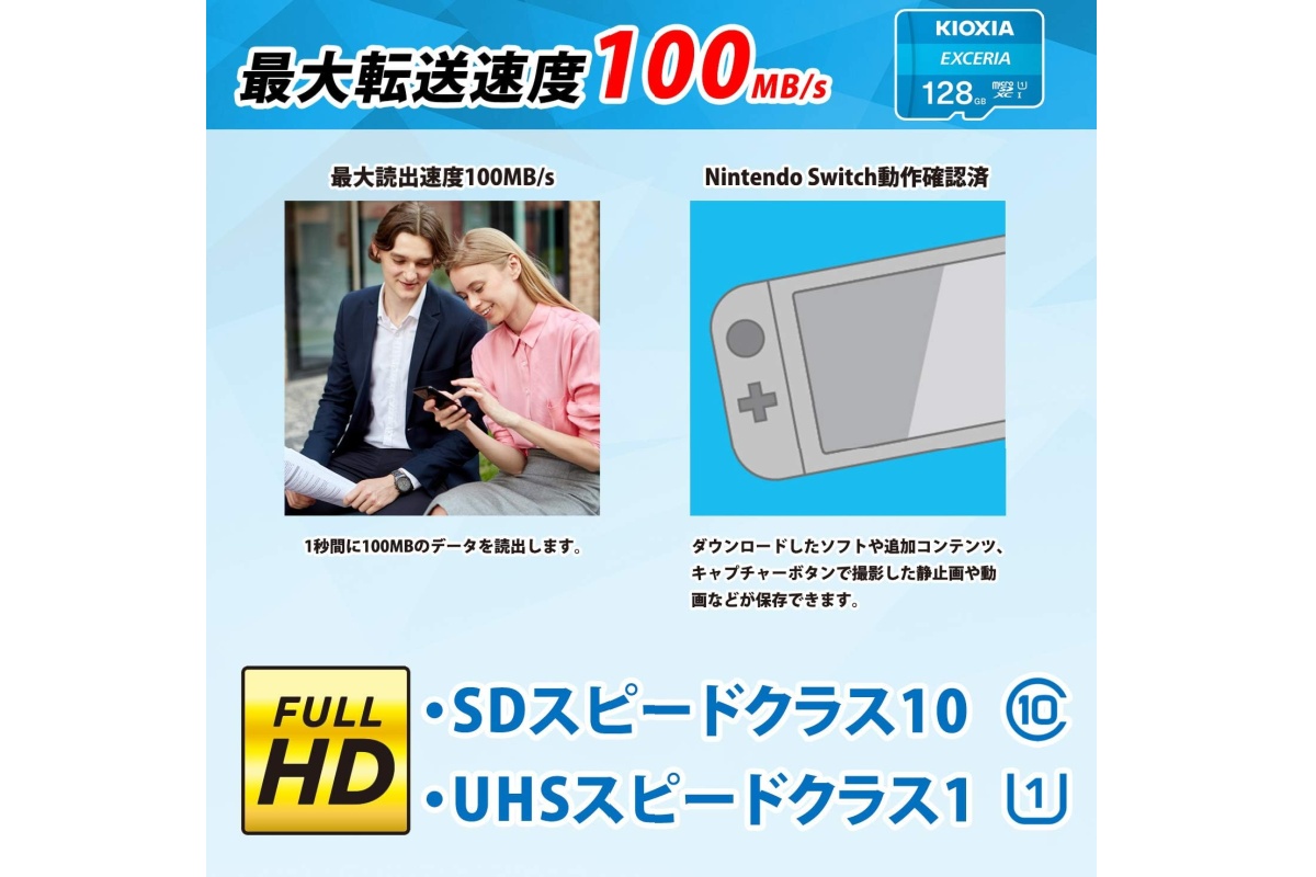KIOXIA(キオクシア)EXCERIAのmicroSD 128GBは、スマホやゲーム機の容量不足を手軽に解消したいときに使いやすいメモリーカードです。