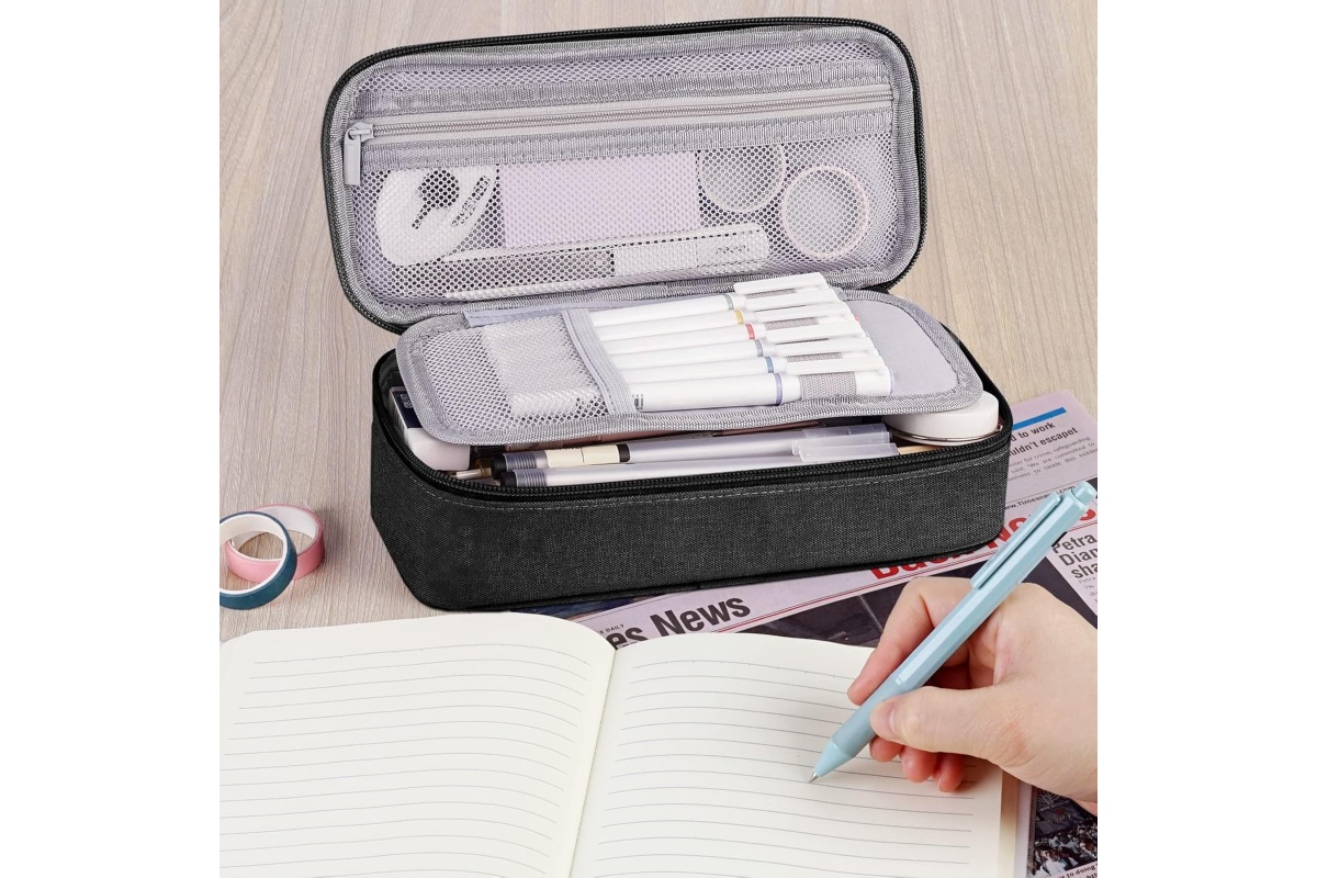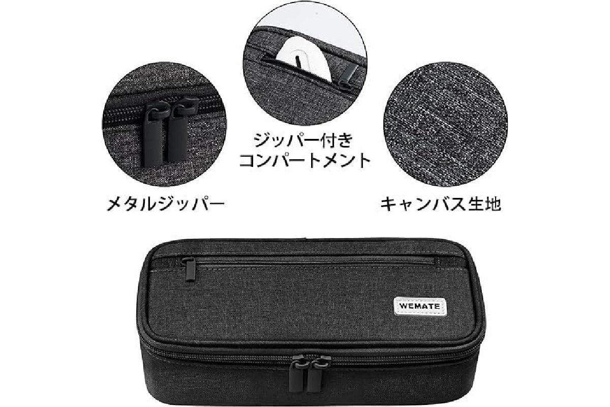 WEMATEのペンケースは、大容量なのに見た目がすっきりした2層タイプで、文房具をまとめて持ち歩きたい人に向いた収納ポーチです。