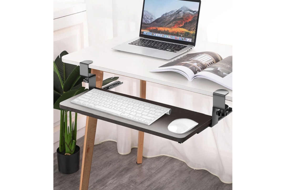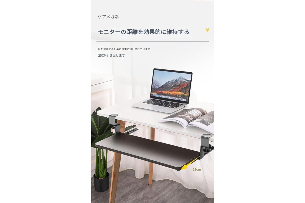 スライド式のキーボードトレイで、デスク下の空間を作業スペースとしてしっかり活用できるアイテムです。