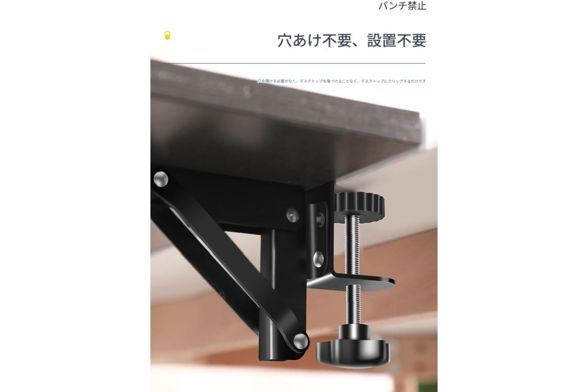 天板にクランプで固定するタイプなので、穴あけ不要で取り付けやすく、模様替えや引っ越しの際も外して持ち運べます。
