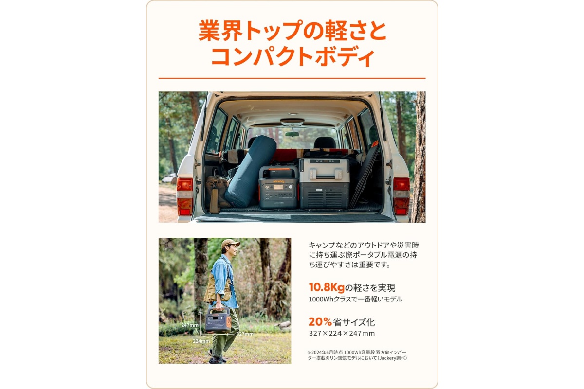 Jackery Solar Generator 1000 New 100 Airは、ポータブル電源と100Wソーラーパネル1枚がセットになった、停電対策からアウトドアまで幅広く使える電源キットです。