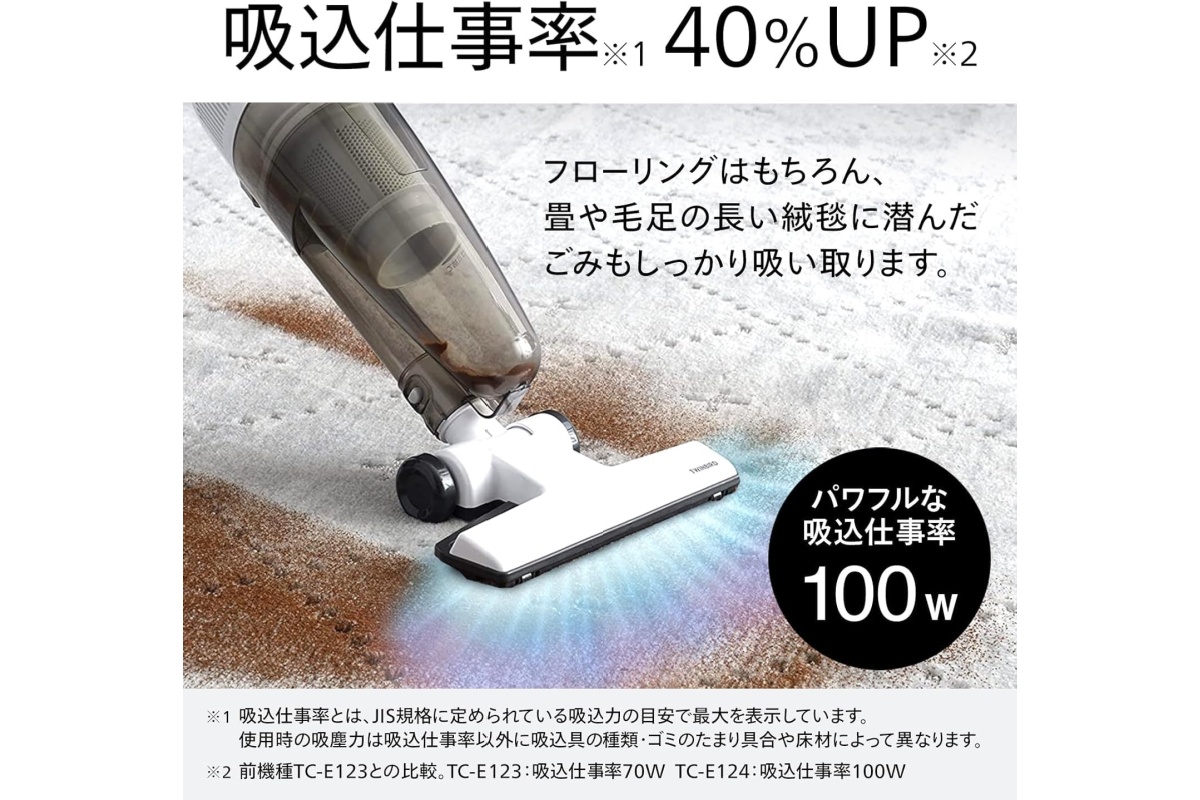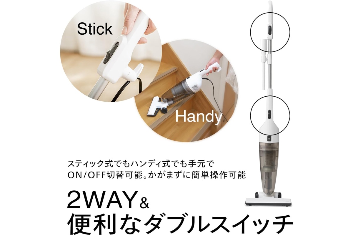 TWINBIRD(ツインバード)のコード式スティック&ハンディクリーナー(TC-E124SPW)は、さっと取り出して手早く掃除したい方に向いた2WAYタイプです。