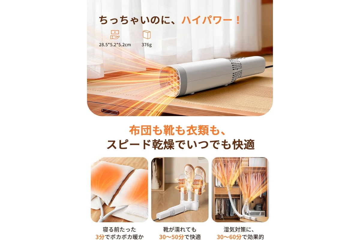 布団だけでなく、衣類や靴の乾燥にも使えるため、雨の日や梅雨時期にも活躍します。
