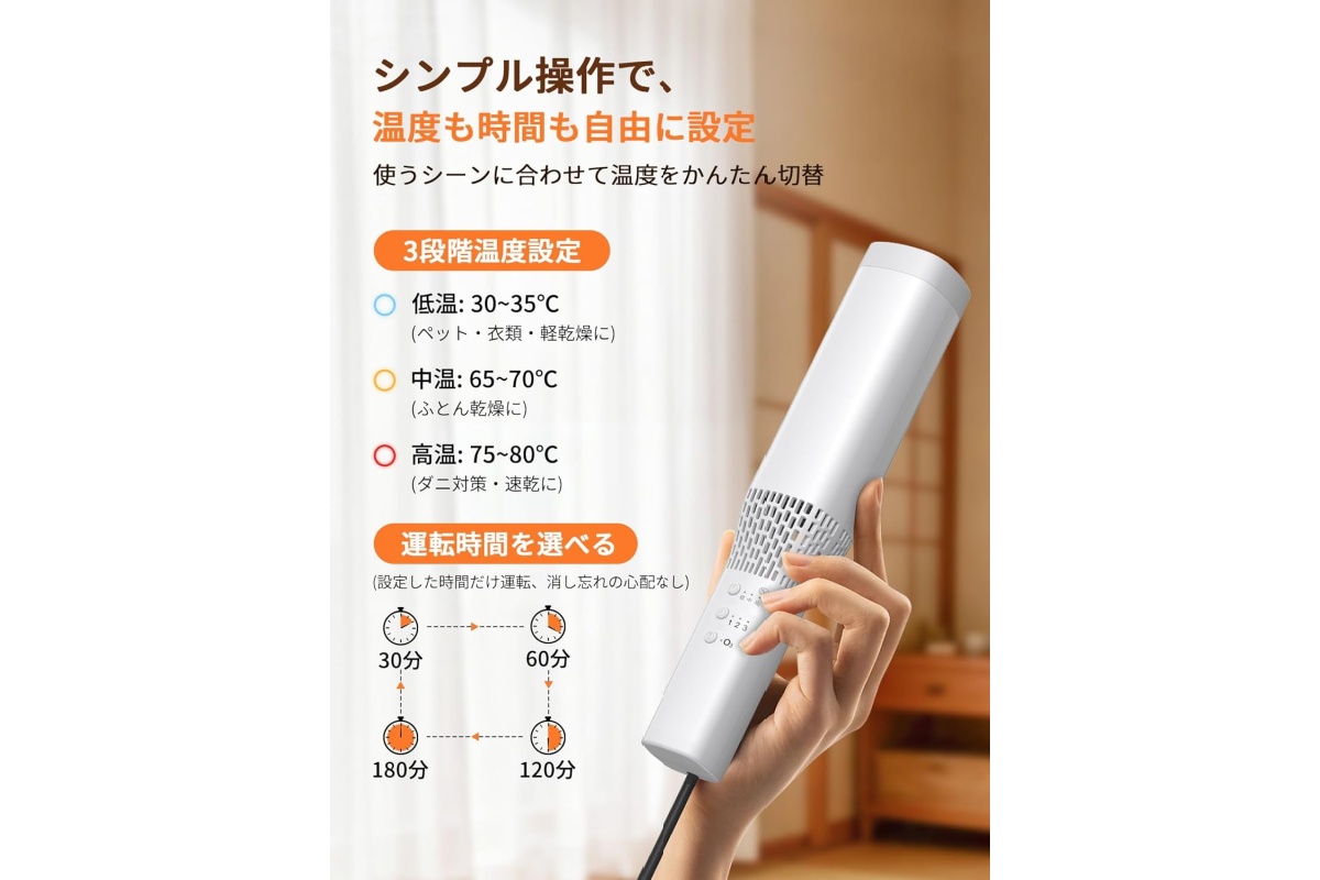 布団ケアをもっと手軽に続けたい人や、天日干しに頼らない生活を取り入れたい人にとって、このような多機能で扱いやすい布団乾燥機は、日常を少し快適にしてくれる存在といえそうです。