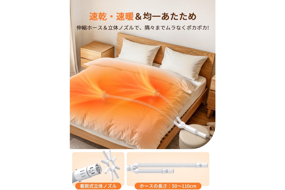 就寝前に布団をあたためたいときや、湿気が気になるタイミングでも無理なく取り入れられます。