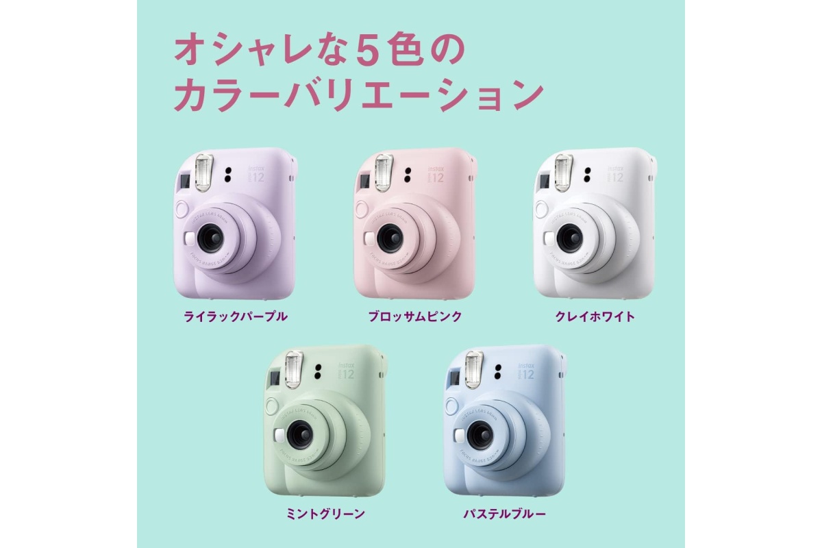 instax mini 12は、シャッターを切ったその場で写真が手に取れる楽しさを、シンプルな操作で味わえる一台です。