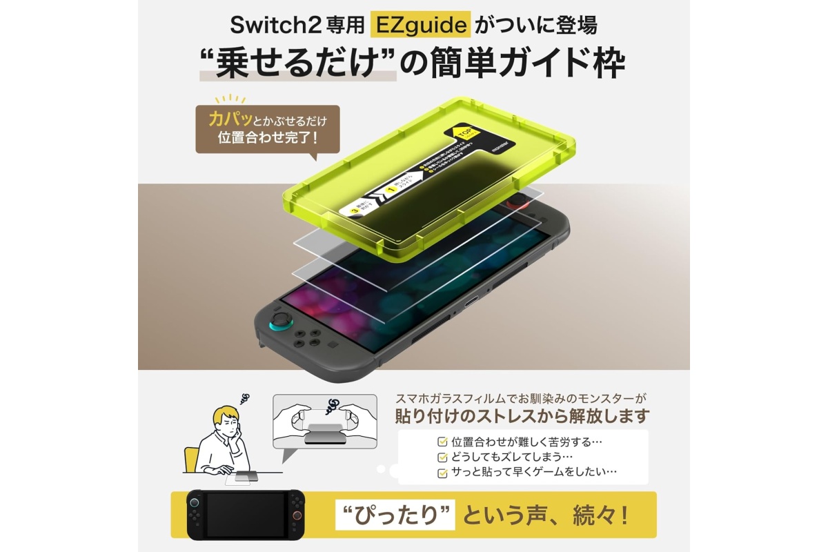 Switch2を長くきれいに使いたい人や、フィルム貼りが苦手な人にとって、このようなガイド付き保護フィルムは安心して選べる定番アイテムだと感じます。