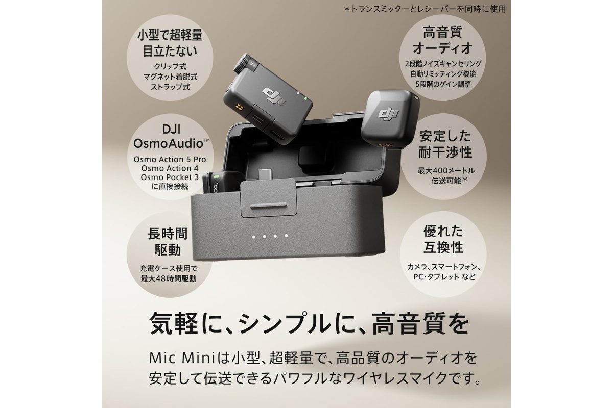DJI Mic Miniは、そんな「音」にこだわりたい人に向けた超軽量ワイヤレスマイクです。