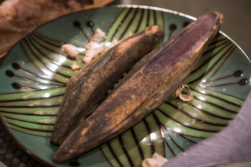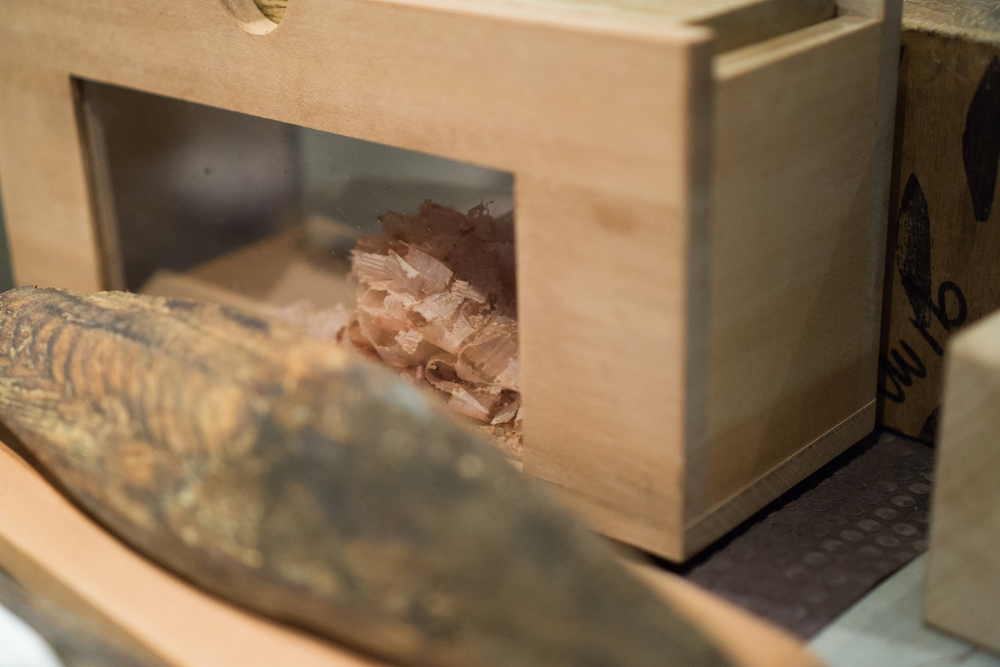 - 削りたての美しい鰹節。ふわりと優しい香りが広がる