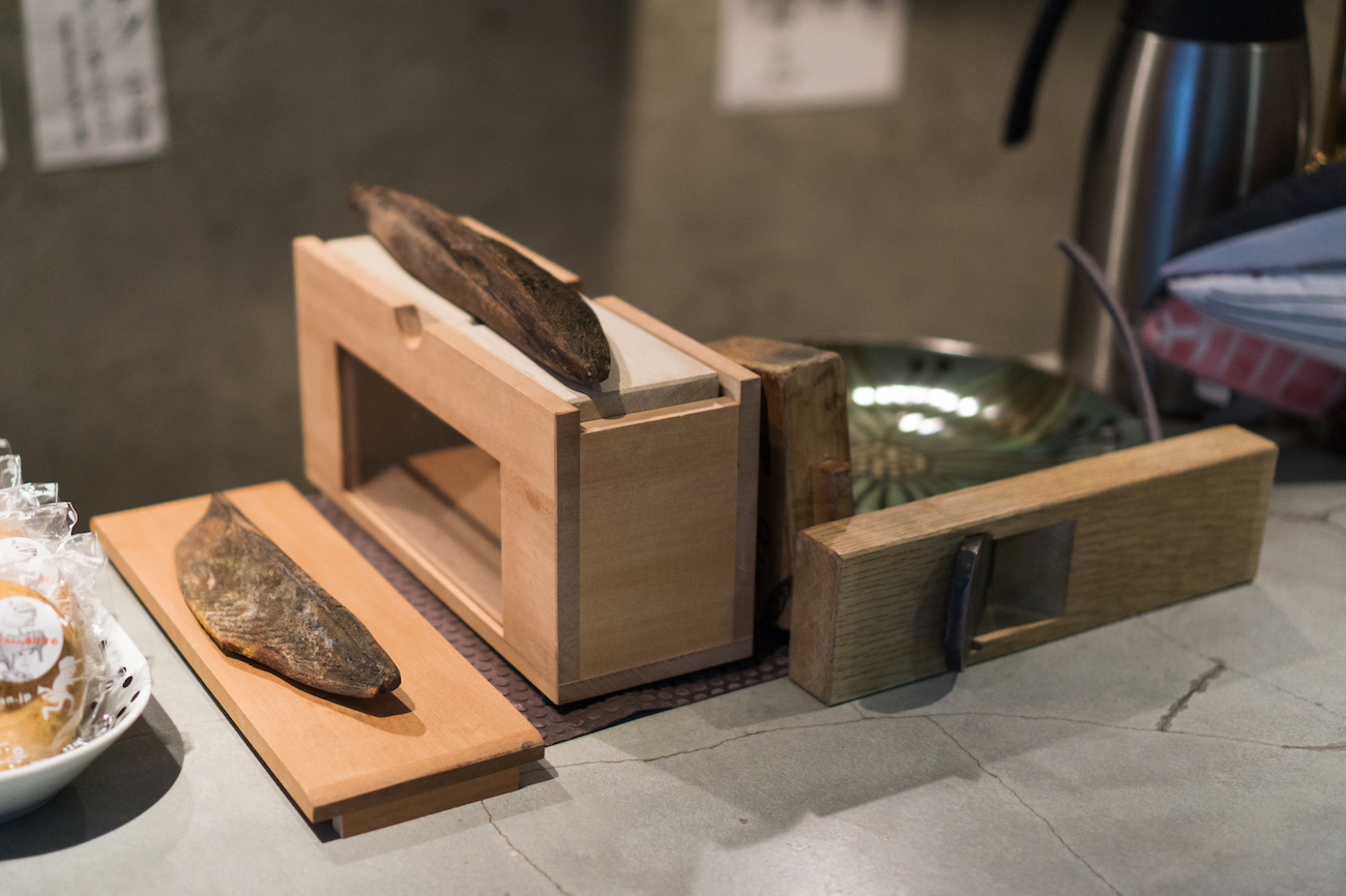 今回いただいた坂井商店さんの鰹節は、形も味も優しいかつお節を作ることをモットーに造られているそうで、火で燻すときも決してかつお節をいじめすぎなく優しく燻すという。カウンター越しのかつおちゃんから、造り手さんの想いやこだわりを聞きながら食べるのもまた、美味しさが増す。月ごとにかつお節が変わるので、次は違う美味しさを味わえるのも楽しみだ。