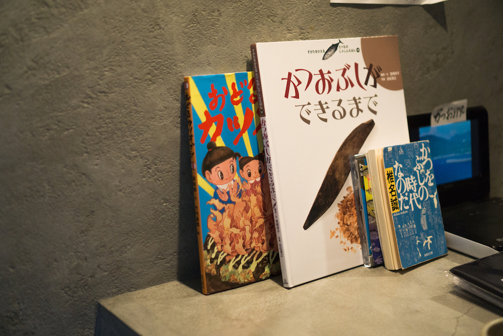 - 店内にはかつお節にまつわる絵本やDVD、資料が置かれており、より深くかつお節の歴史や魅力を学べる空間となっている