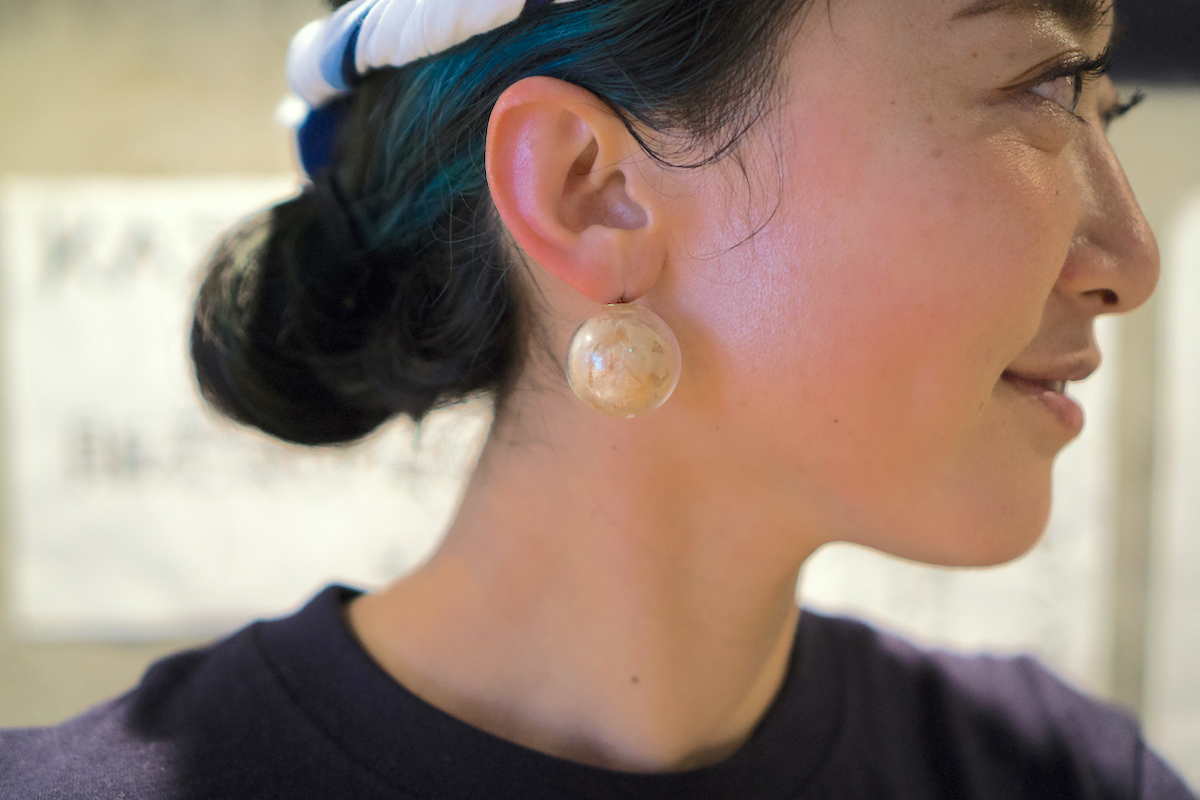 なんとこちらの可愛いピアスの中にもかつお節! 髪には“かつおブルー”のメッシュが。かつおちゃんのかつお愛は止まらない。