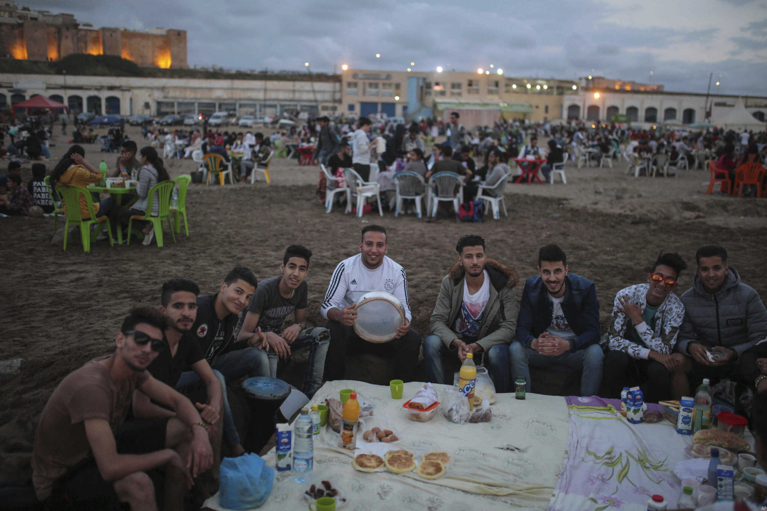Stocked with food and drinks, families and friends swarm to the beach to enjoy the Atlantic breeze and, when the fasting is declared over, share in the iftar meal.