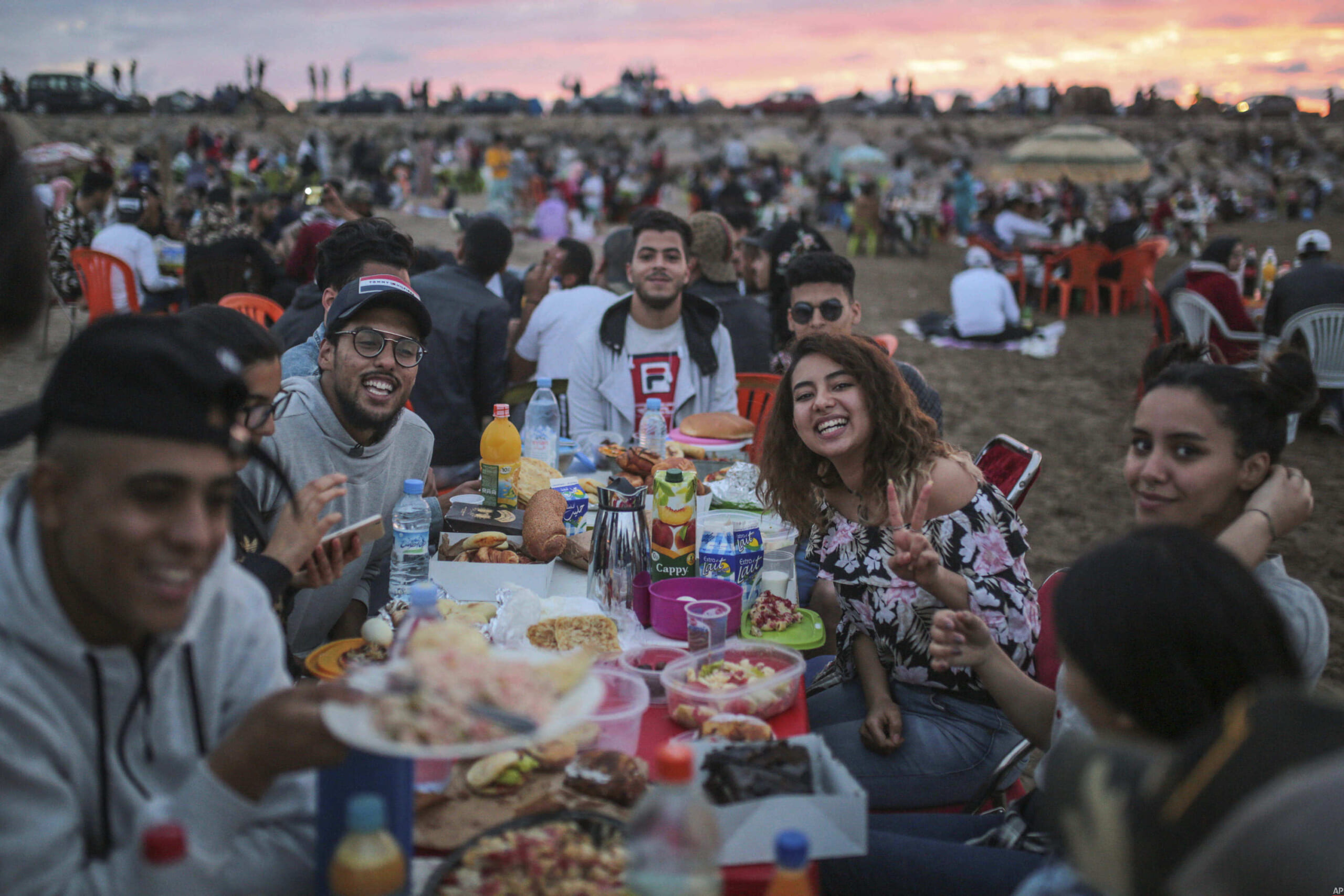 人々は家族や友人たちを連れ、食事や飲み物を用意して大西洋のそよ風を味わおうとビーチにやって来る。断食の終わりが宣言されると、日没後の最初の食事「イフタール」を分かち合う。