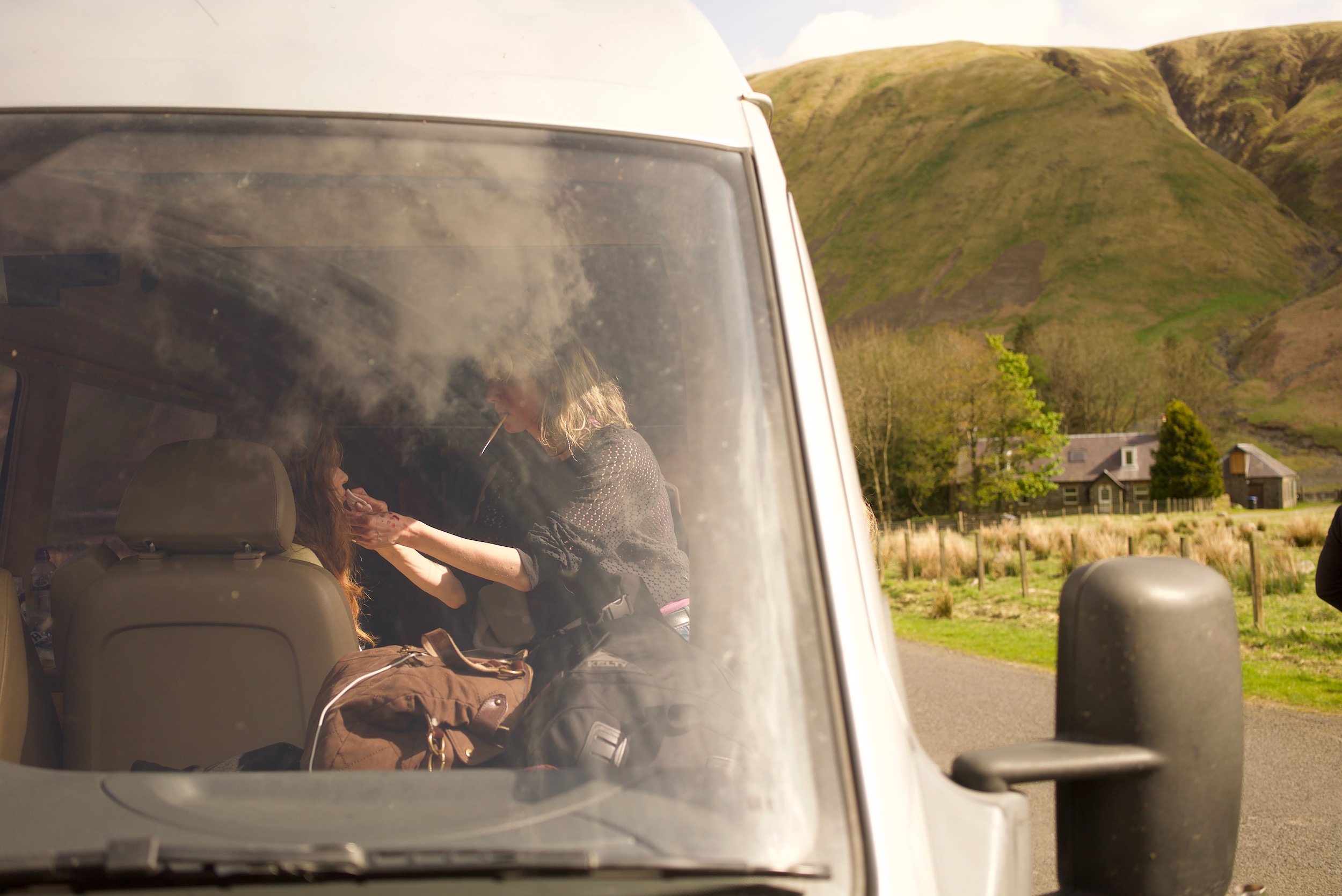 2日目は、車を1時間半ほど走らせた大自然の中。5月の中旬だが、この日は秋用のコートを着ていても寒いくらいで、薄手のダウンかニットがあったらよかったな、という寒さだった。しかし日差しは強く、ずっと外にいるとしっかり日焼けをする。スコットランドはモスクワとほぼ同緯度だが、メキシコ湾流の影響で緯度のわりには暖かいと言われている。北欧とも似ている天気。