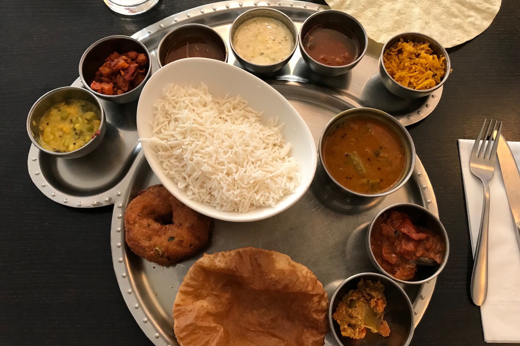 その中でもたまたま通りすがった南インド料理屋さん Tanjore、外からのぞいて見るとインド系のお客さんばかりだったので、期待できるかも!と思い入ってみることに。店内はカレーリーフやクミンのいい香りで充満していた。ラッサムスープがかなり本格的で、大満足なミールスだった。