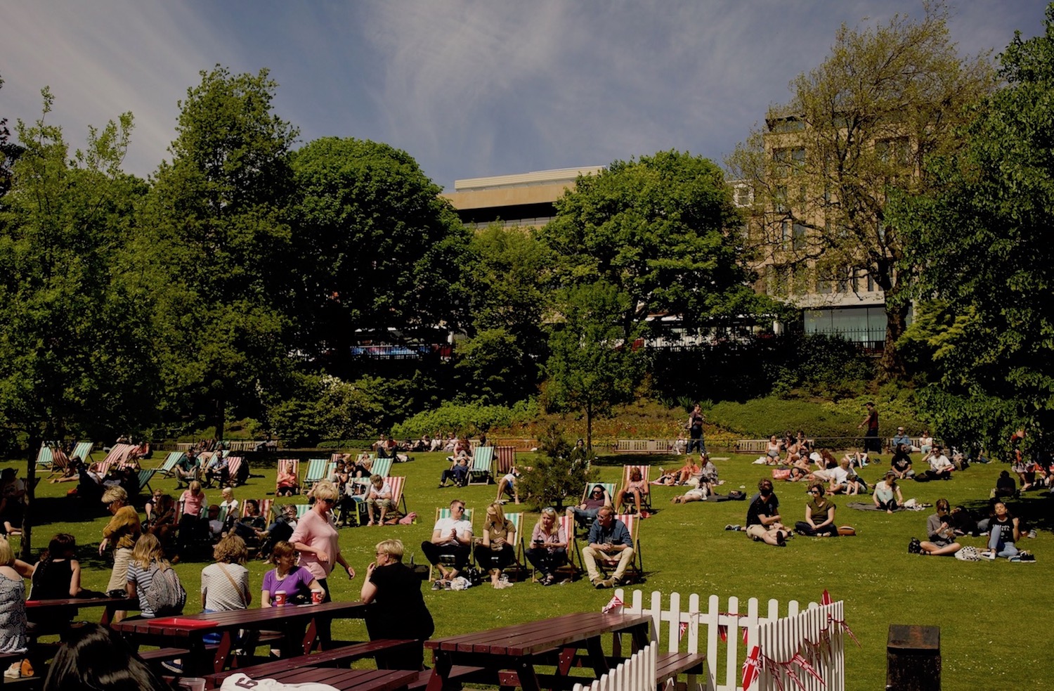 三日間の撮影が終わった翌日、ホテルからairbnbに移り、早速朝食がてらカフェに向かって散策してみることに。この日はairbnbの家主さん曰く、珍しいくらいに暖かく、最高の散歩日和だった。公園を通り抜けると、桜が散り終わったところだった。公園には所狭しに椅子を出して日光浴をしている人達がいた。