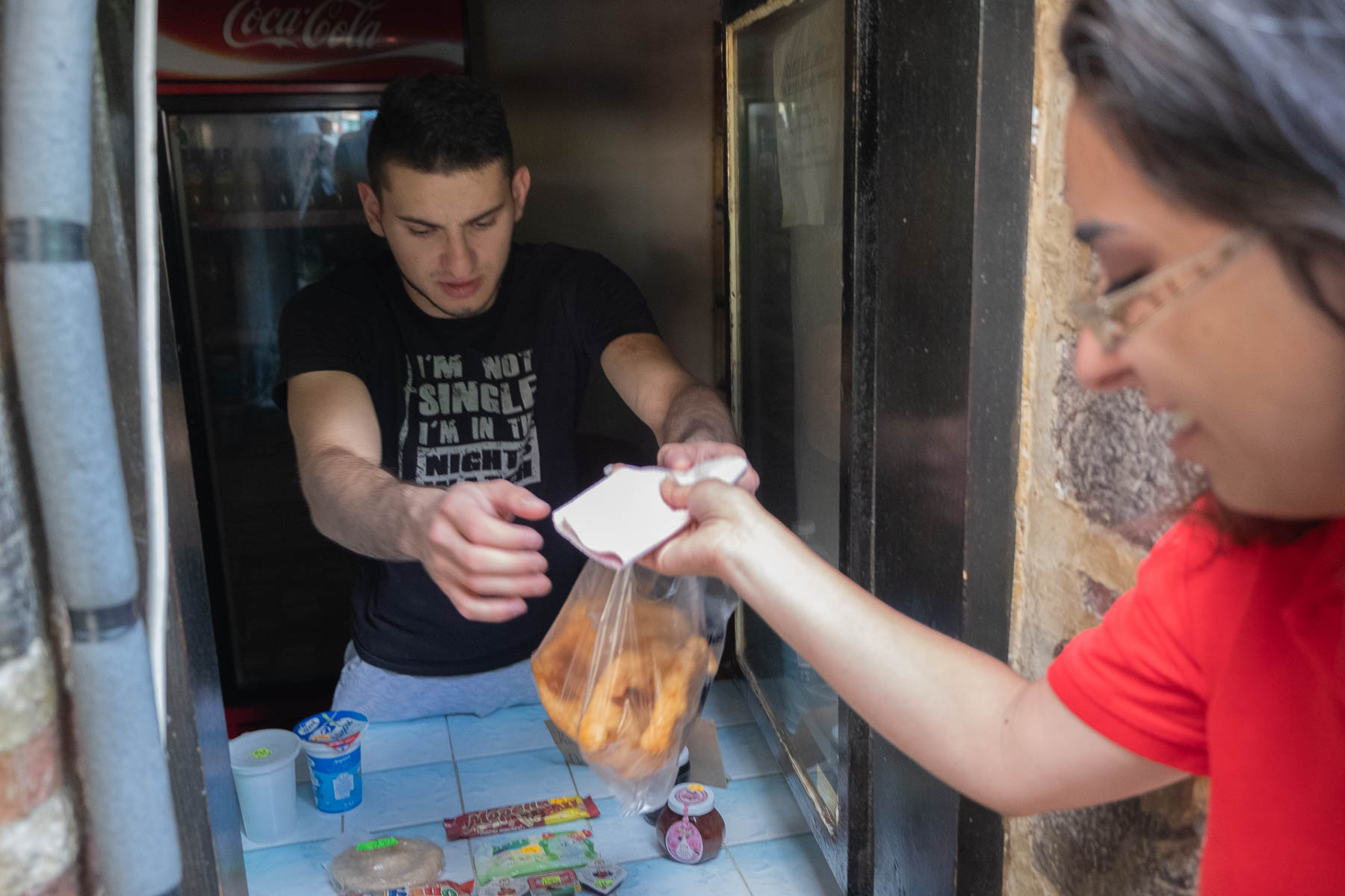 裏手に回ってもう一つの門を出ると小川が流れていた。そこにかかる橋を渡ったところに修道院の古いベイカリーが建っている。売られるのはブルガリア伝統の揚げパン「パニツァ」だ。ブルガリアの人たちが朝食やスナックによく食べる。