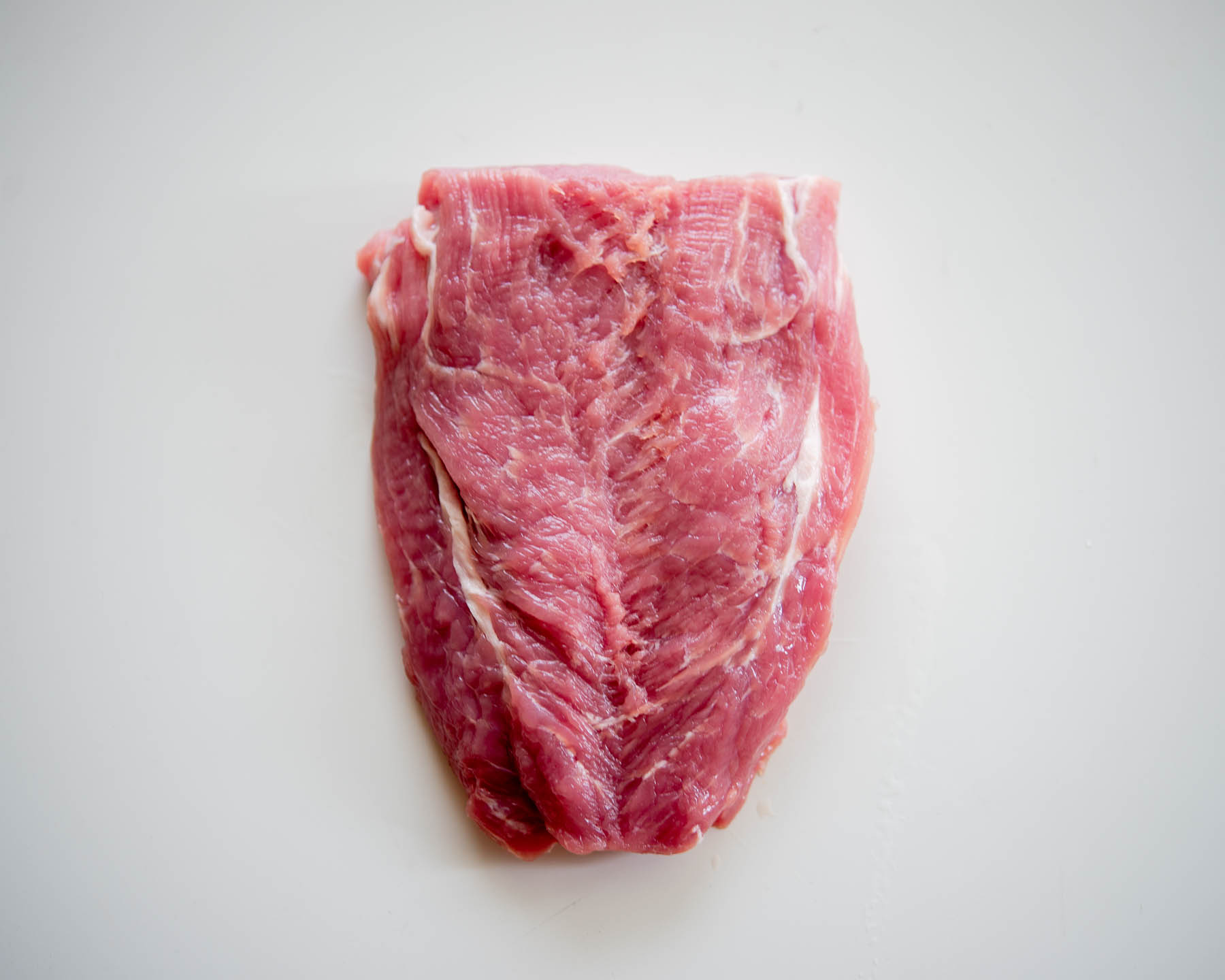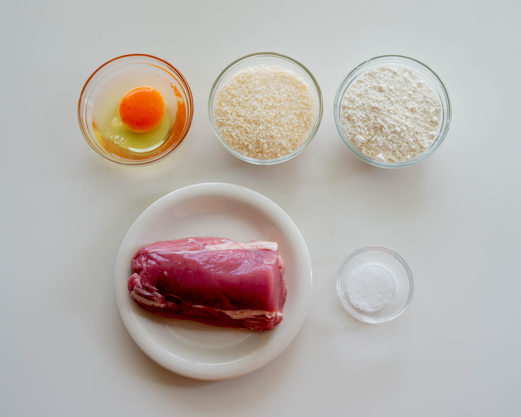 ウィーンの老舗「Figlmüller」のウィンナ・シュニッツェル(写真上)はそのサイズに驚かされる。とはいえ肉は薄く、普通に食欲があるなら食べ切ることは難しくない。使う調味料は塩だけでこしょうも使わないようだ。今回はこのシンプルなシュニッツェルを手本にしてみよう。肉は豚のロース肉を使う。