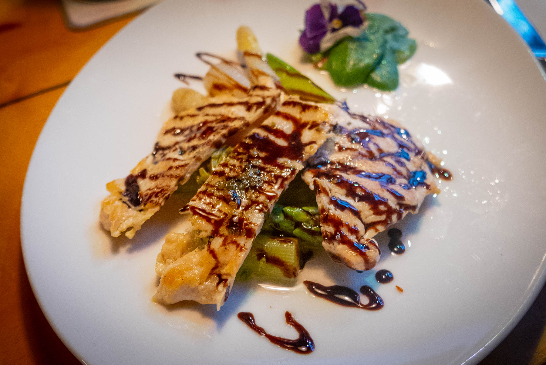 ここのシュニッツェルは、アスパラガスに乗せられた、鶏肉のシュニッツェル。仔牛のものと比べると、更に軽い印象で外を歩き回る日のランチにちょうどいい。バルサミコをベースにしたソースも爽やかだ。