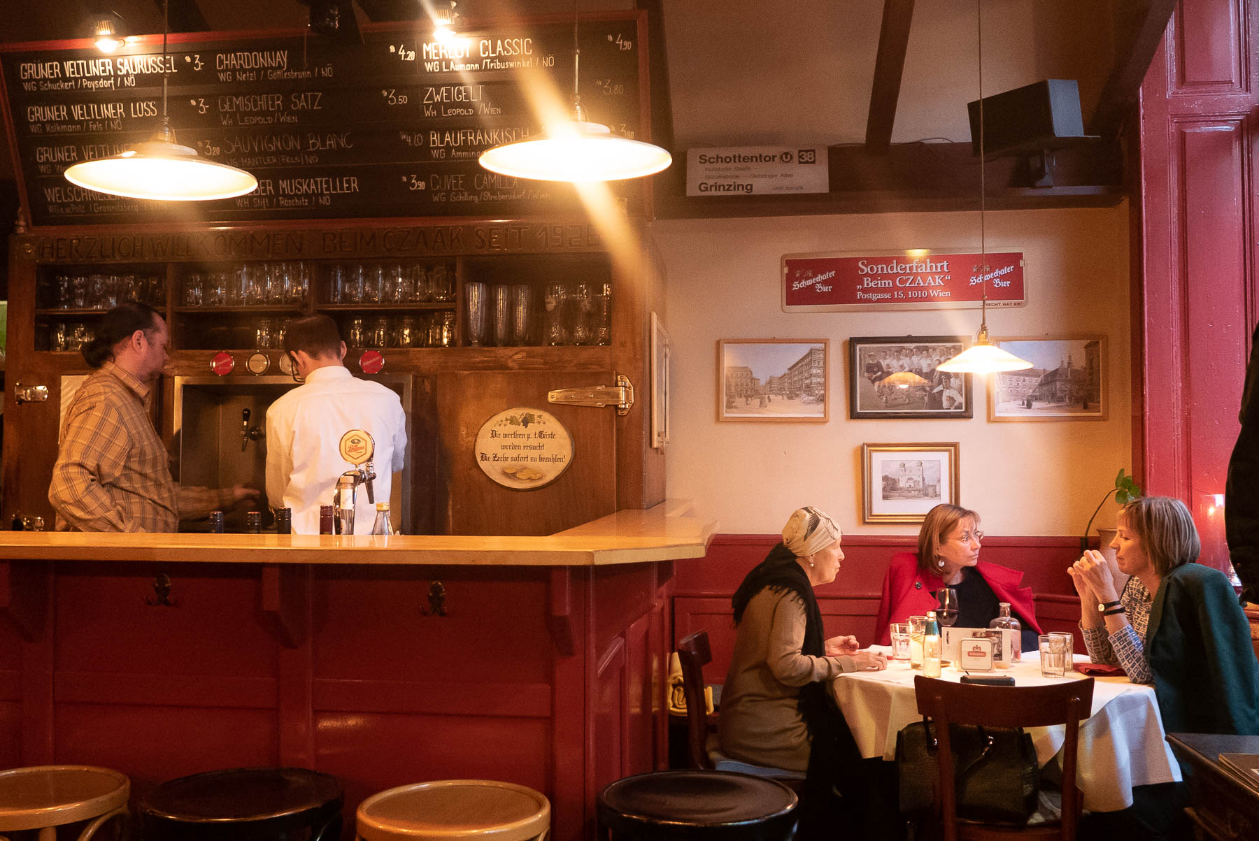 手前がバースペースで、奥がレストランというしつらえの「Alt Wiener Gaststätte Beim Czaak」という店に、遅めのランチを求めて入ってみた。早い時間からご婦人たちがちょっと飲みながら何やら話し込んでいる様子。