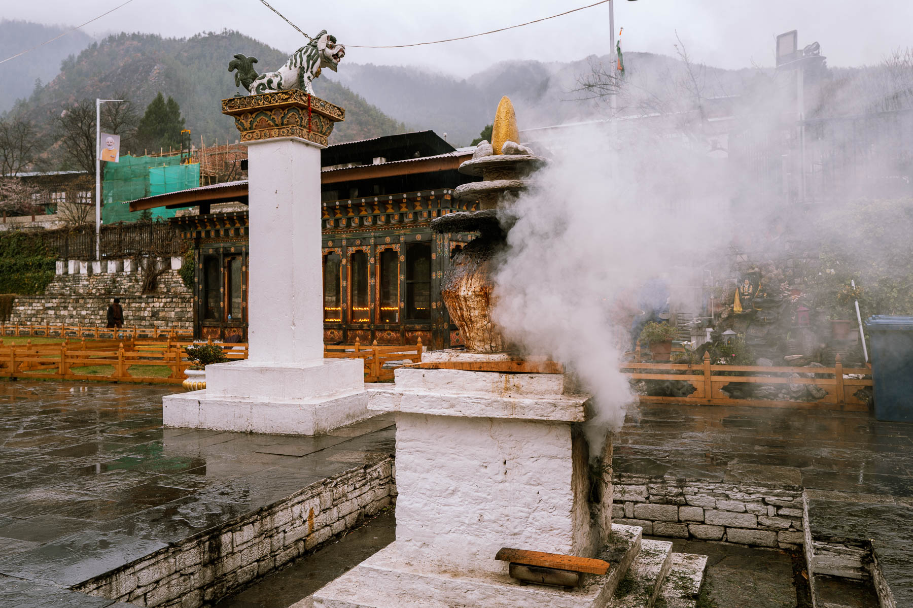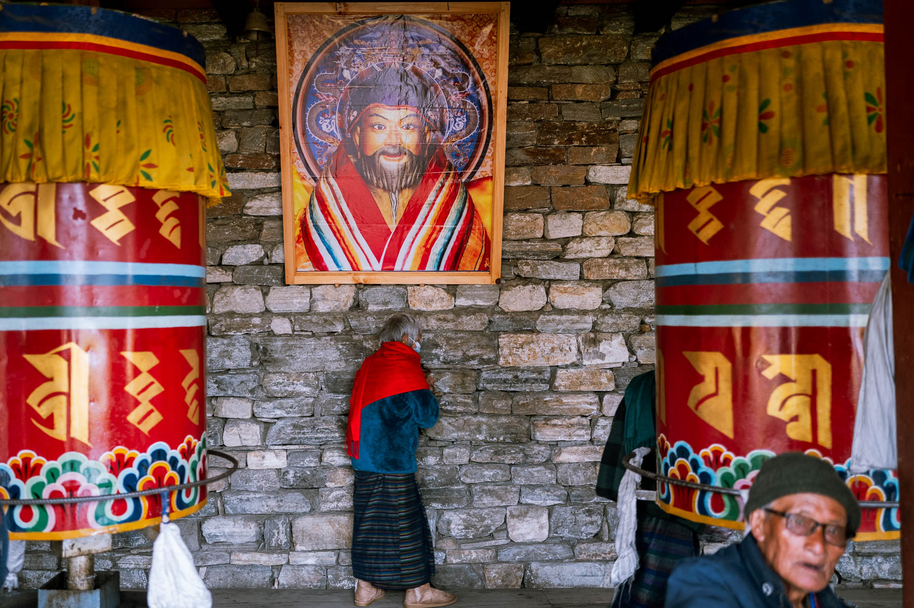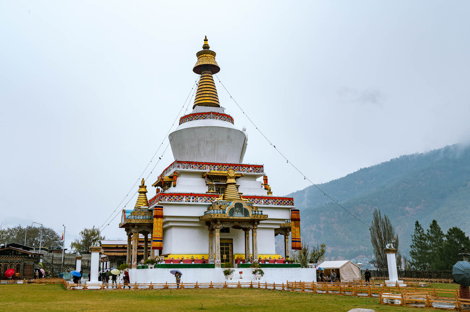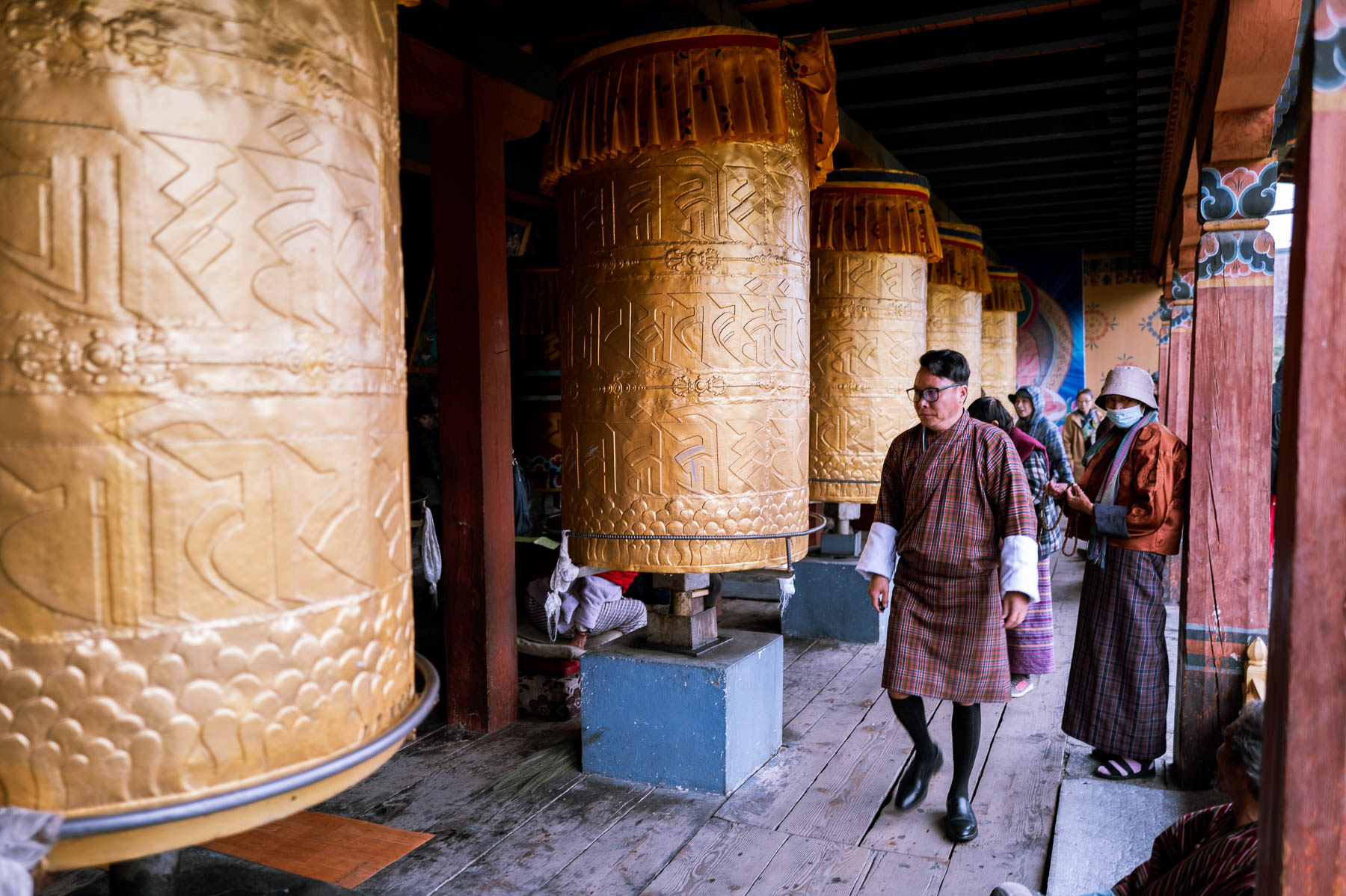 ティンプーの街の中心から歩いて10分ほどの場所に、ナショナル・チョルテンと呼ばれる大きな仏塔がある。現在の国王、ジグミ・ケサル・ナムゲル・ワンチュクの祖父に当たる第3代国王ジグミ・ドルジ・ワンチュクの遺志を継ぎ、第4代国王ジグミ・シンゲ・ワンチュクにより1973年に建立されたものだ。敷地に足を踏み入れると、黄金色と赤に彩られた、人の背丈を超えるほどのマニ車が並んでいる。参拝者たちがそのひとつひとつを回しながら歩いていた。