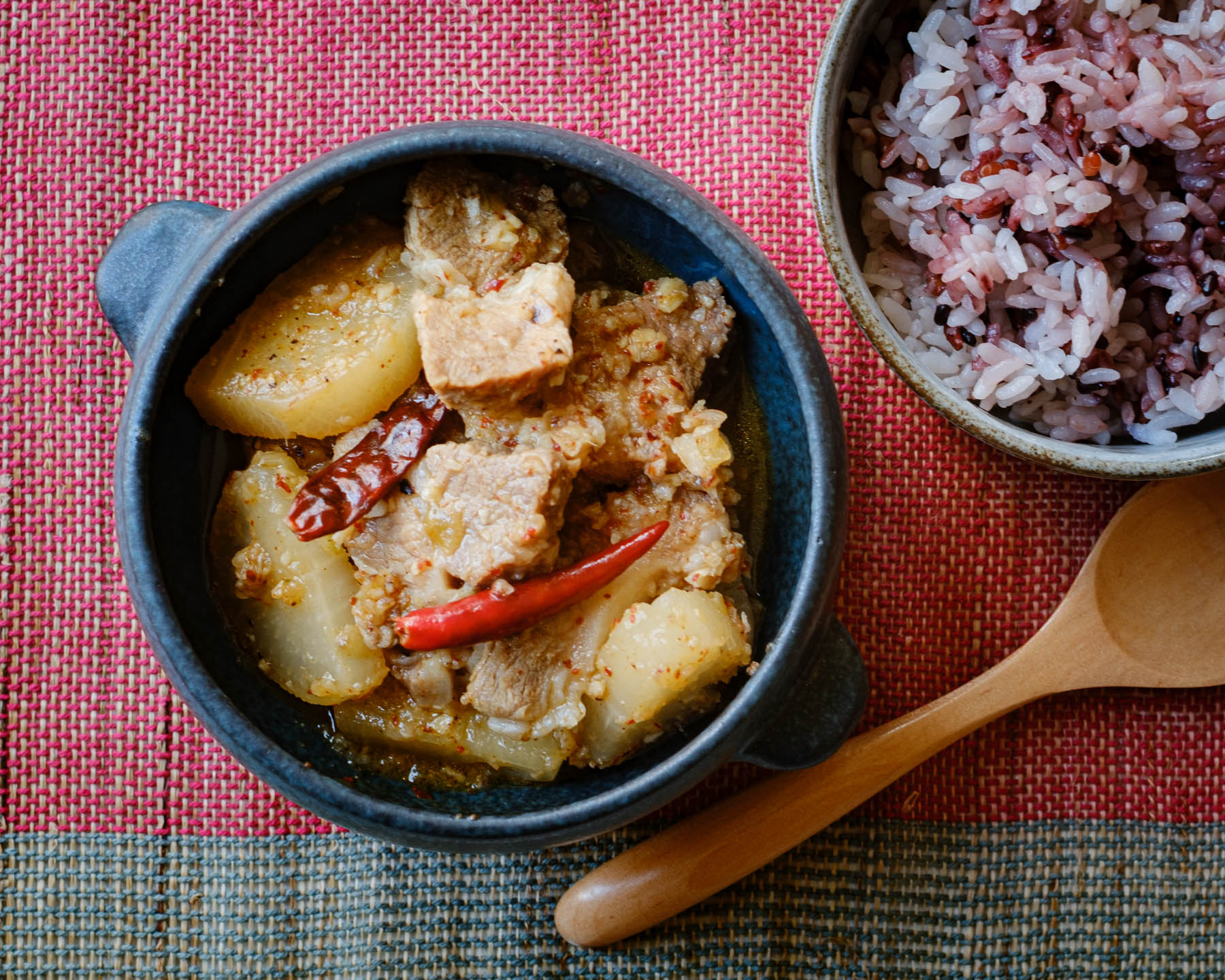 ブータンには大小さまざまな唐辛子があり、調味料としてだけでなく、野菜のように料理に使われることも多い。今回紹介するのは、豚肉と大根を唐辛子で煮込むブータンの料理「ファグシャバ」だ。紹介するレシピでは辛さは控えているが、より本格的な辛さを体験したいなら、チリパウダーを一味唐辛子に変えたり、乾燥唐辛子の量を増やしてみるのもおすすめだ。