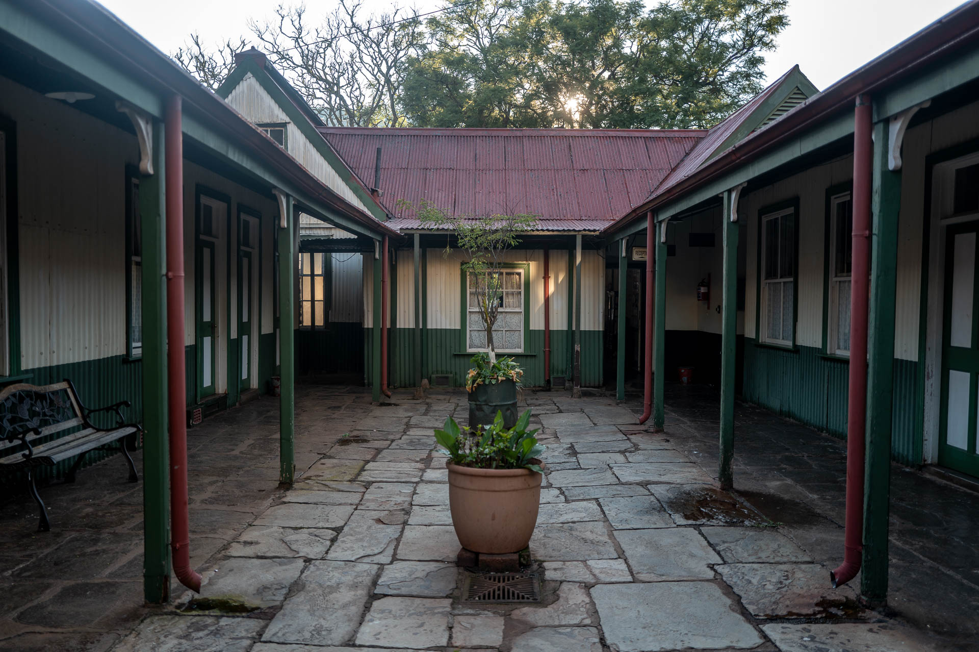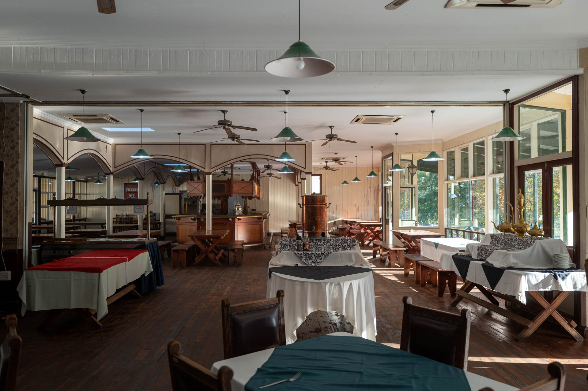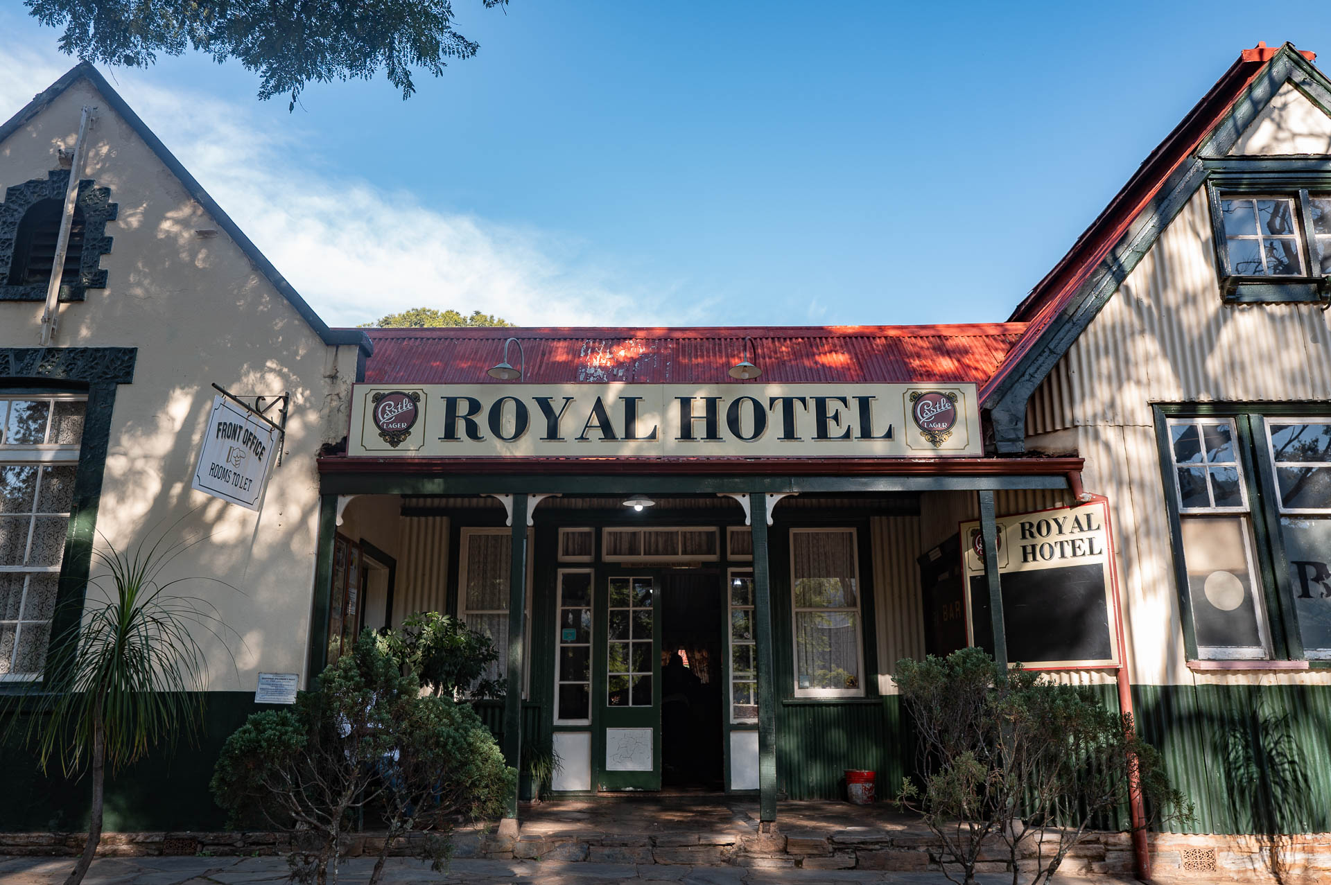 南アフリカにも、その熱狂の痕跡が残っている。ヨハネスブルクから北東に400㎞ほど。緑深い山あいにピルグリムス・レストという小さな町がある。1873年にピルグリム・クリークに金鉱があることが発表されると、瞬く間に1500人が住む町が生まれたという。そのメインストリートに並ぶのは、当時のレトロな建物。その一つ、ロイヤル・ホテルに宿泊した。