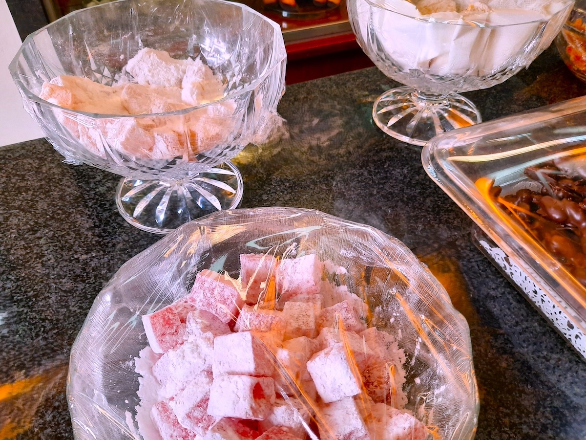 角型でゼリーのような食感の『ルクミ』は私のお気に入りの1つだ。様々な色とフレーバーがあり、ピンクのバラの風味がポピュラー。町でコーヒーを飲むと添えられることもある。