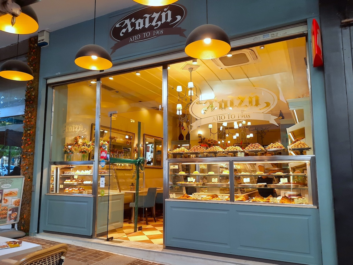 El Grecoは、店先のガラス越しに見えるお菓子がとにかくおいしそう。ギリシャのお菓子からチョコレートケーキやイチゴタルトまで、あらゆるものが揃っている。ここは以前はChatzisのアテネ店だった。最近El Grecoという名前になったが、レシピ、材料の品質、そして菓子職人は変わっていないとのこと。Chatzis本店はギリシャ第2の都市、テッサロニキ(ギリシャ北部)にあり、1908年にオープンした。