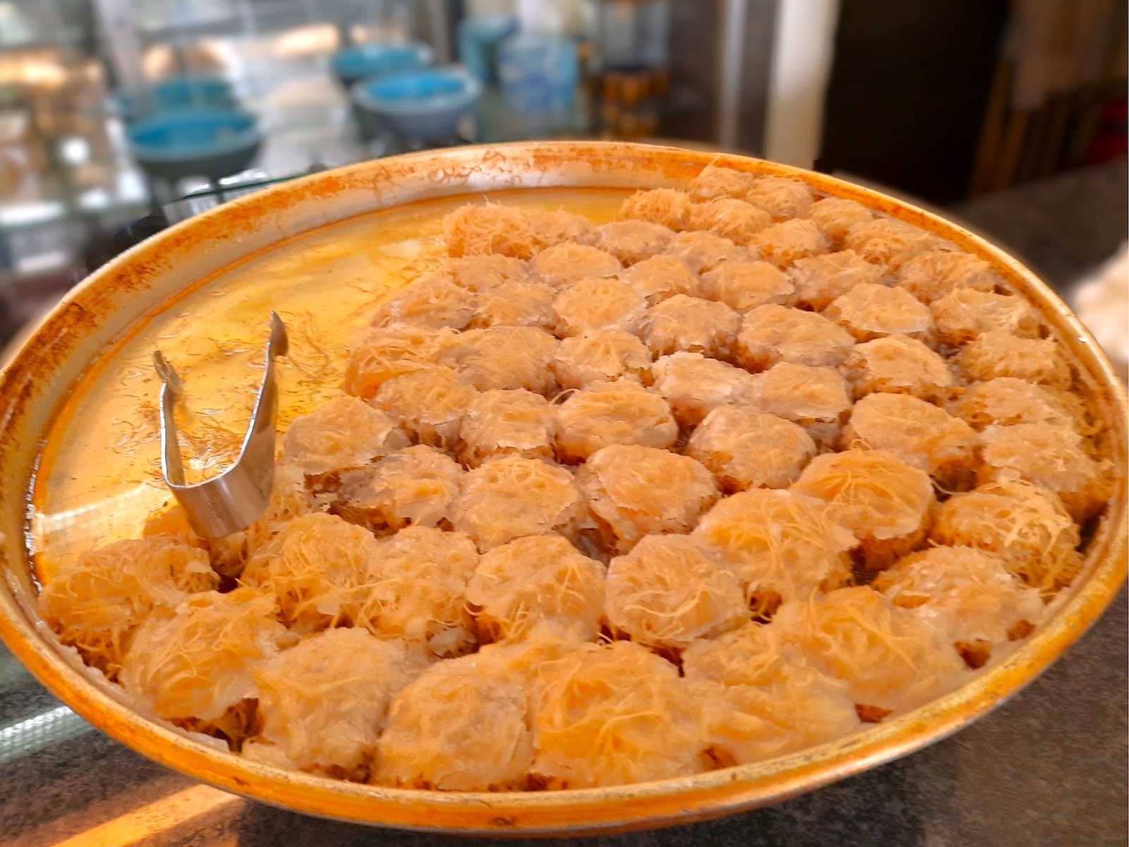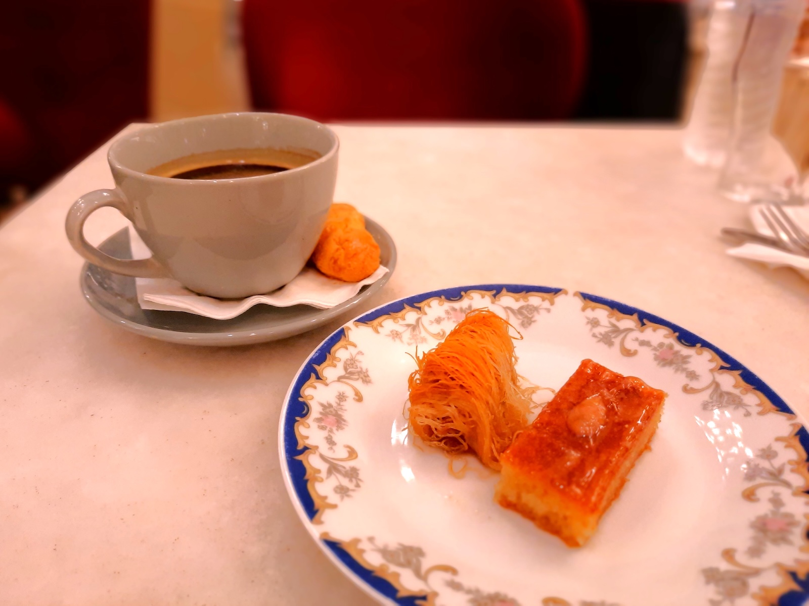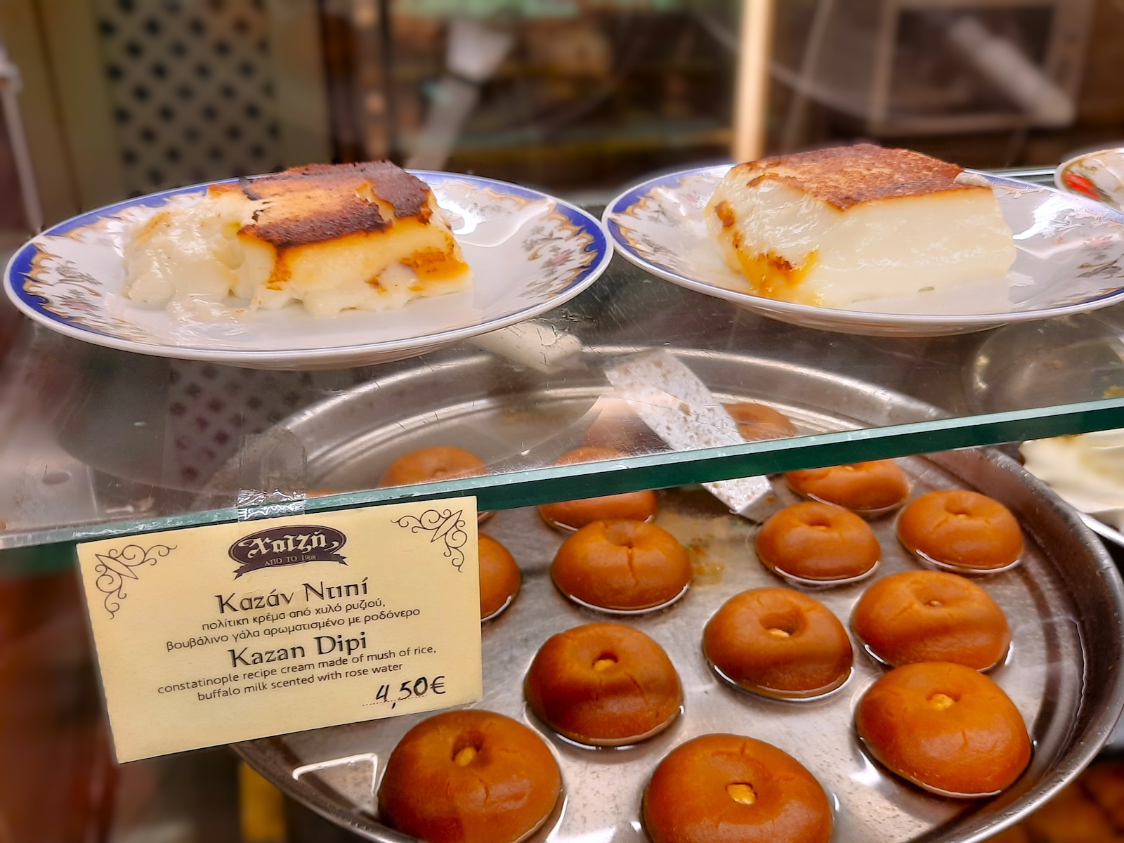 Chatzisだった頃、数回違うお菓子を試し、どれもおいしかった。前回は、ギリシャ名物の『カタイフィ(カタイファキ)』を食べた。小麦粉と水でできた“天使の髪”と呼ばれる糸状の生地で、ナッツ類(この店ではクルミ)を包み、焼いて、シロップに漬けたお菓子だ。また、やはりシロップに漬けたギリシャの伝統菓子『サマリ』も食べた。サマリの生地は、セモリナ粉(粗挽き小麦)、ギリシャヨーグルト、マスティハ(ギリシャ産の天然樹脂)で作っている。値段は他店と比べて全体的に少し高め。店内は2階席もあって広々していて、ゆっくりできる。