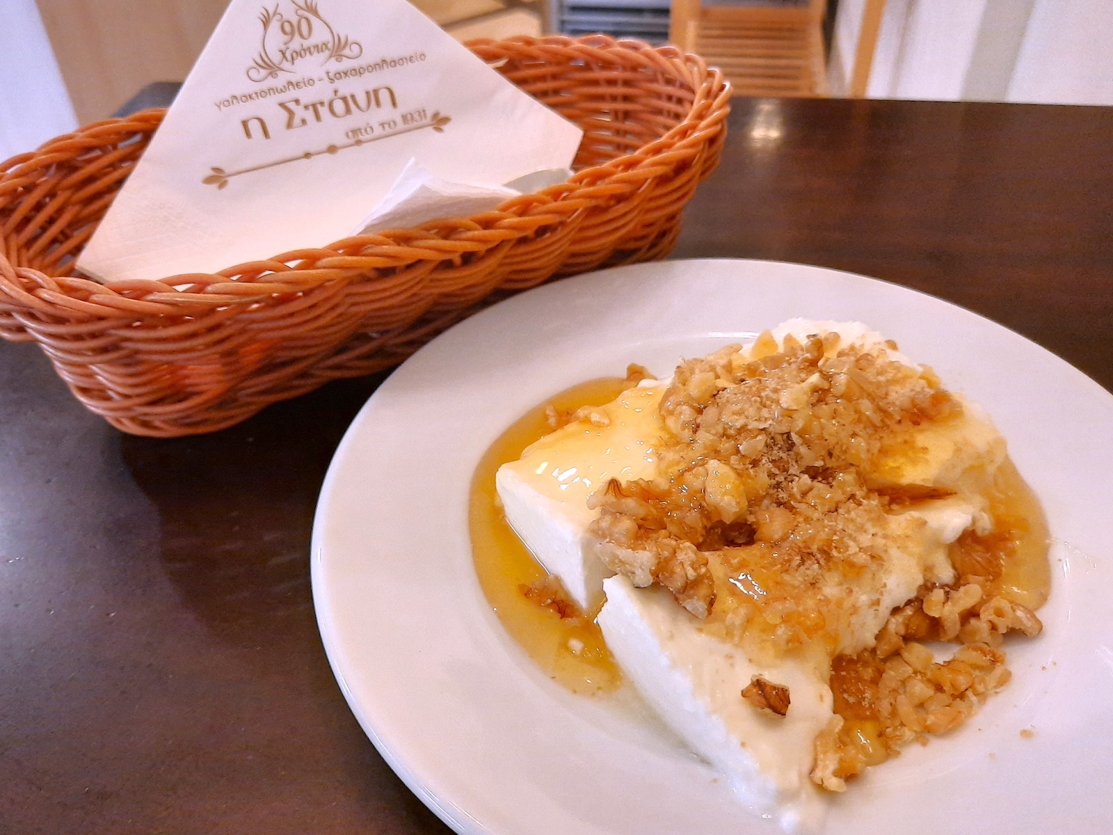 Staniは、アテネに残る最後の乳製品専門店だという。ここの自慢は、ペロポネソス半島産のハチミツをたっぷりかけクルミをトッピングした、新鮮な羊乳で作られたヨーグルト。朝早くから開いていて私はこの一品を朝食にしたが、確かに普通のギリシャヨーグルトとは一線を画し、まろやかで絶品だった。屋外席もあり、人でいっぱいだった。