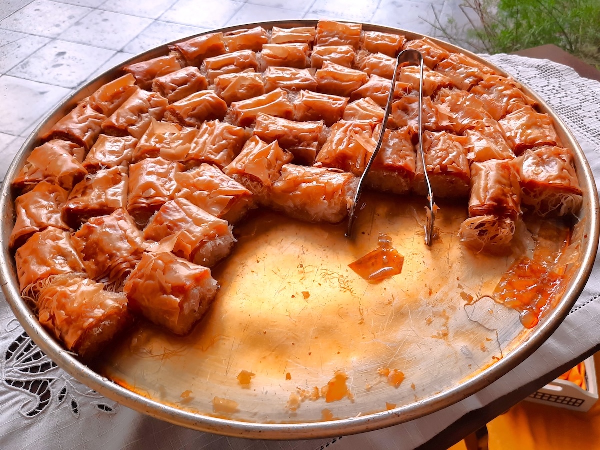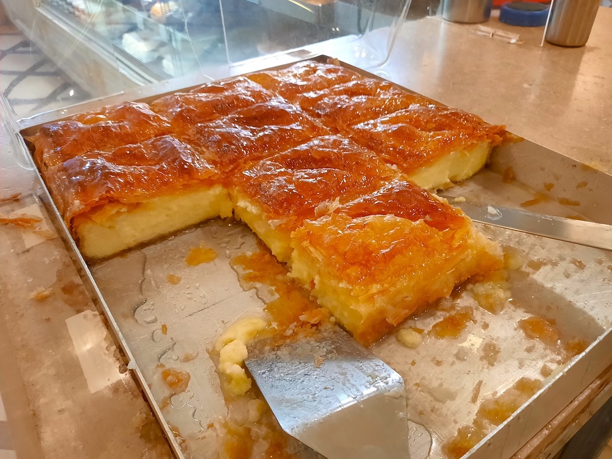 Staniではガラクトブレコ(焼いた後にシロップをかけたカスタードクリームのパイ)、先に挙げたカタイフィ(カタイファキ)なども人気。パッケージ入りのヨーグルトを買いに来た人もいた。