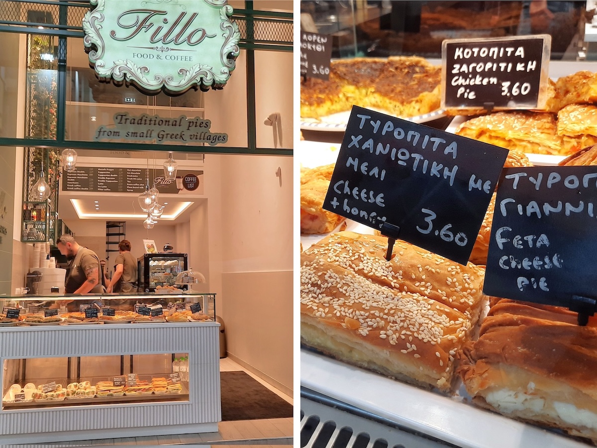 スイーツショップではないが、ギリシャ風パイを豊富に取り揃えたFilloは朝食や昼食に最適。オーガニックのパイもある。ホウレン草、トマト、ズッキーニ、ネギ、ハム、マッシュルーム、チーズ、フェタチーズ、チキンなどの風味で、全国からレシピを集めたそう。アップルパイ、ハチミツ&ヨーグルトなどのスイーツもあるので、パイと組み合わせてみてはいかが。コーヒーもおいしいと評判だ。(サイトには以前の所在地が表示されているが、2023年春に、写真のVoulis 11, Athinaに移転した)