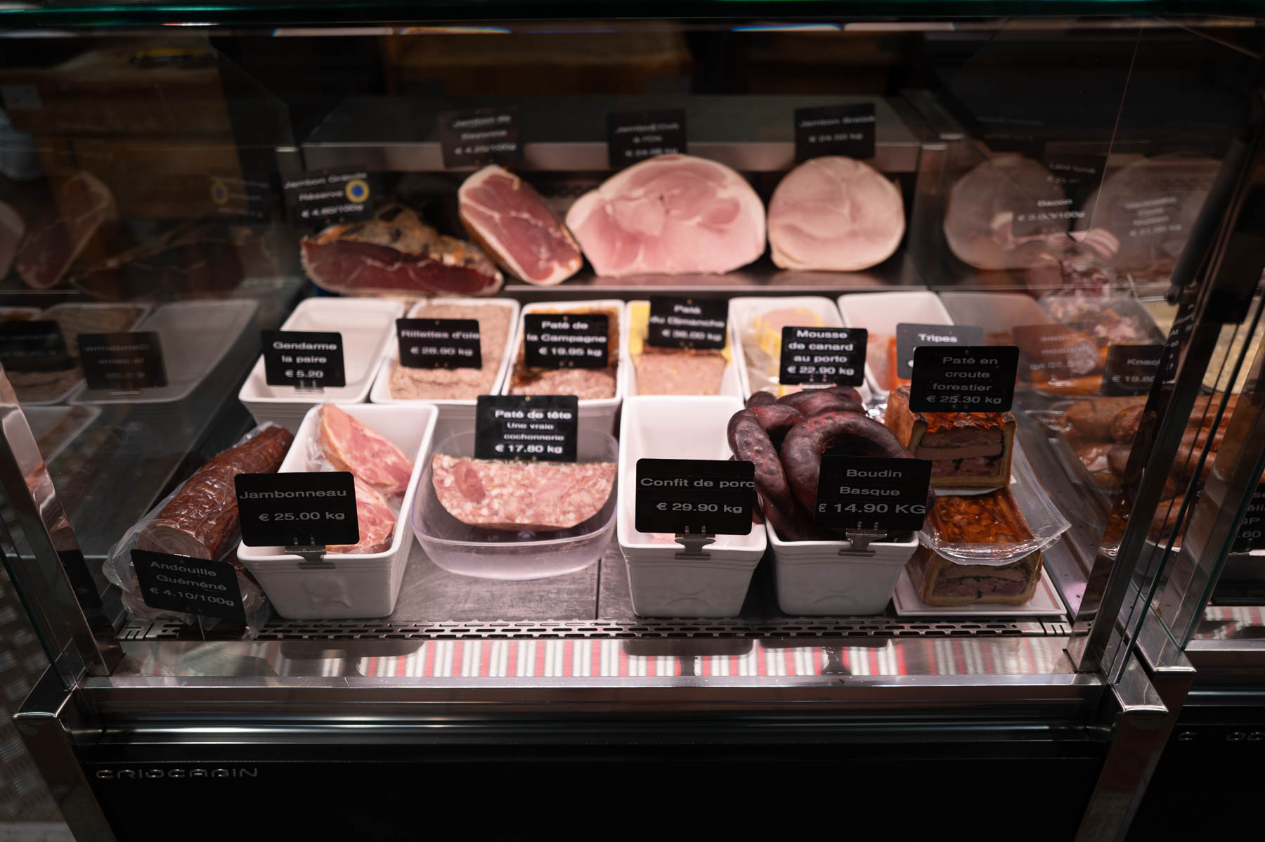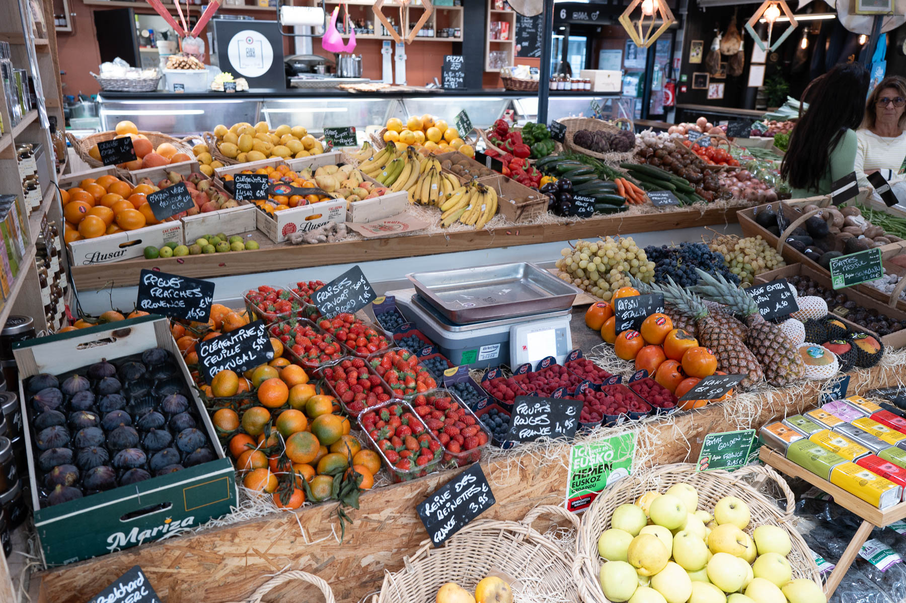 バイヨンヌの旧市街には中世を思わせる建物が並んでいるが、ニーヴ河畔にあるマルシェ、『レ・ザール・ド・バイヨンヌ(Les Halles de Bayonne)』 は現代的な施設だ。中には20を超える店があり、野菜、肉などの生鮮食品から、バイヨンヌ特産のハムやフォアグラ、豚肉の血を使うソーセージ、ブーダン・バスクなどの加工品、唐辛子のエスペレット、チーズ、土地の総菜などが並ぶ。カフェやビストロもある。食料を買いだすのにもいいし、ビストロでのんびりするのも良し。現地の食に触れることができて楽しい。