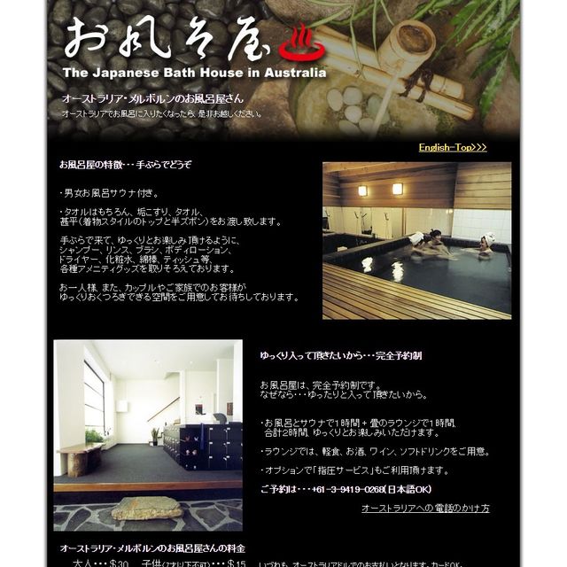 ちなみに「お風呂屋」は1999年に開業の日本人による経営である。日本式のマナーを細かく説明したホームページからは「本当の日本の風呂をオーストラリアの人々に伝える」という理念が実を結びつつある。