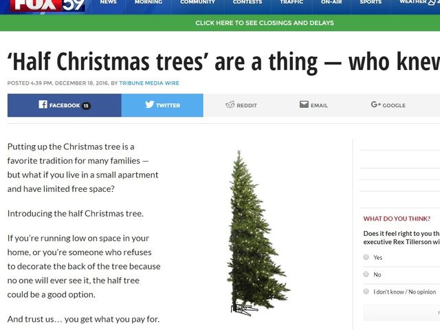 “前から見れば普通” パカっと半分、張りぼてツリーが米で人気に! 日本でも流行る?