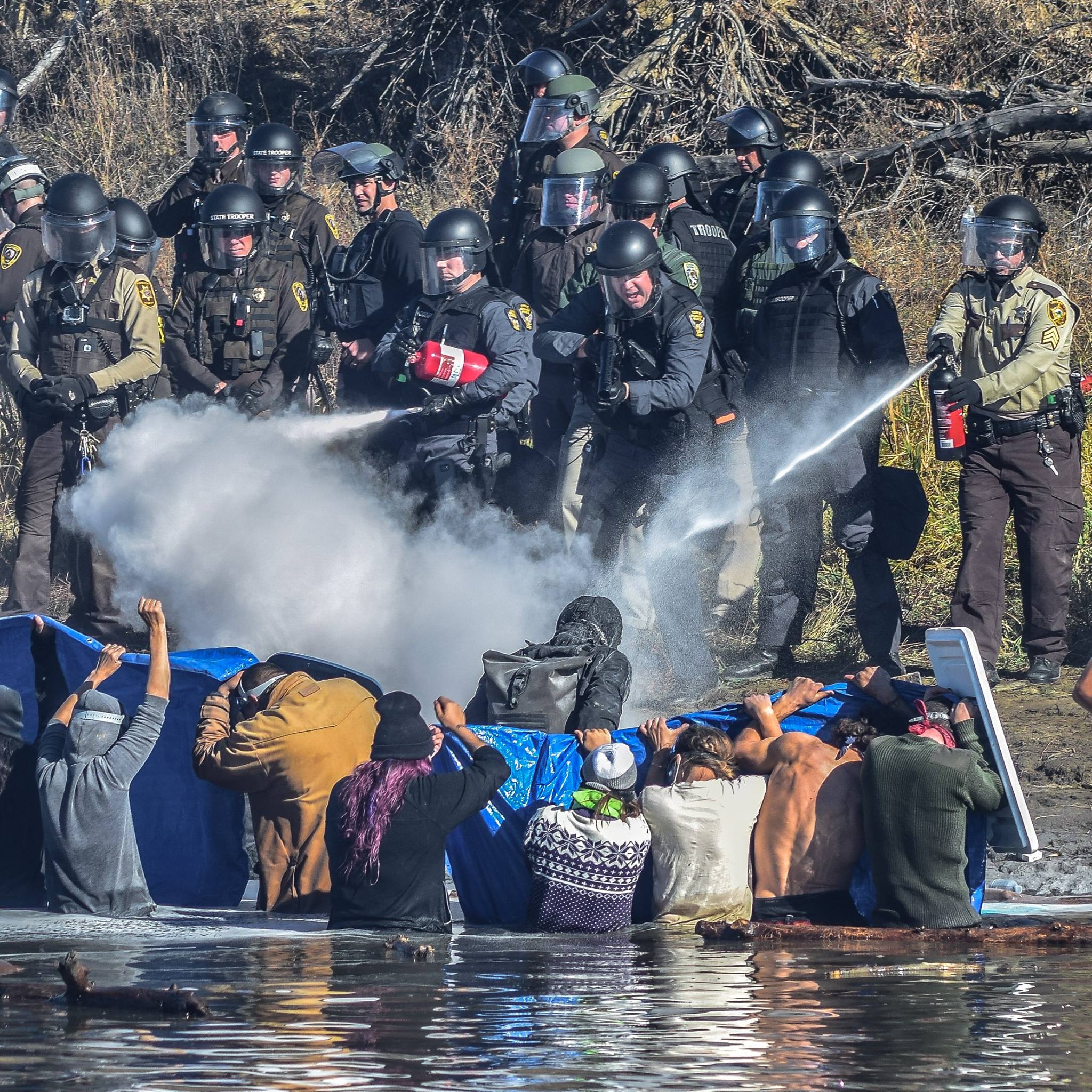 世界中から非難を浴びているのが、警察による抗議者への暴力だ。昨年9月デモクラシー・ナウ!がその衝撃的な映像を放送してから、抗議の声はSNSで一気に輪を広げ、集まってきた部族や環境活動家、退役軍人、国内外からの応援者達は、時に1万人を超えた。