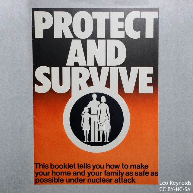 サッチャー政権だった1980年、イギリス政府は「 Protect and Survive」(防御して生き延びよ)というタイトルのサバイバル・ガイドを国民向けに発行した。ときは、いつ核爆弾の発射ボタンが押されてもおかしくなかったかもしれない「東西冷戦」といわれた世界的緊張の真っ只中だった。